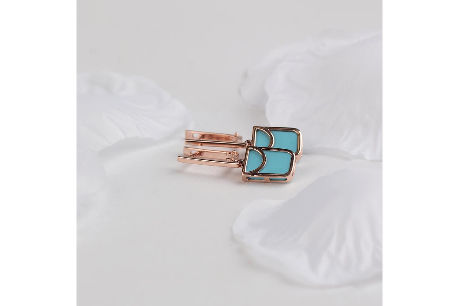 Мастера компании NEWGOLD, приложив всё свое мастерство и искусство, создали для Вас на нашем собственном производстве Серьги из красного золота с бирюзой.