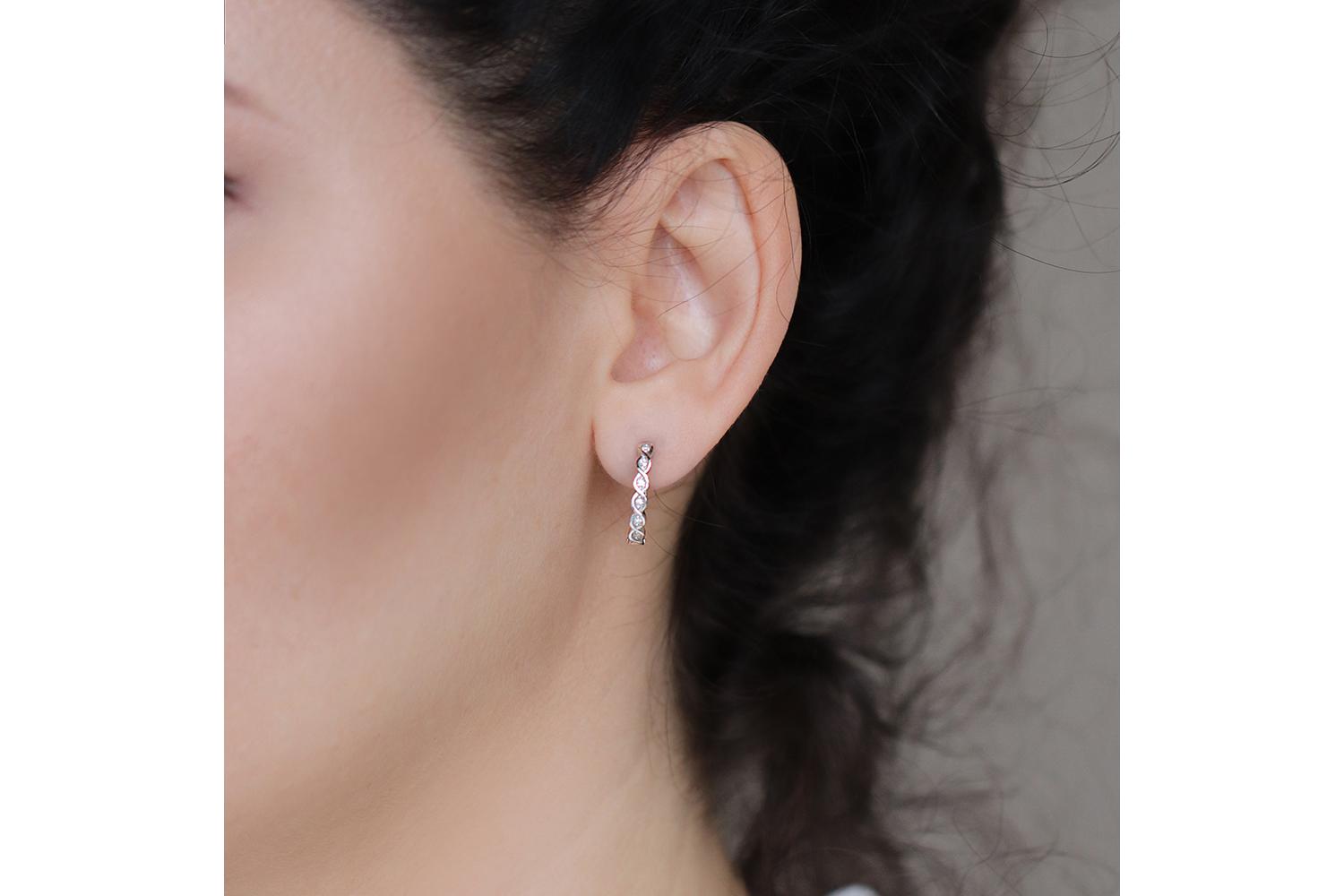 Мастера компании NEWGOLD, приложив всё свое мастерство и искусство, создали для Вас на нашем собственном производстве Серьги Дорожки из белого золота с 12 фианитами.