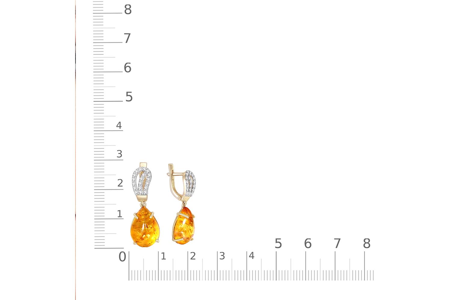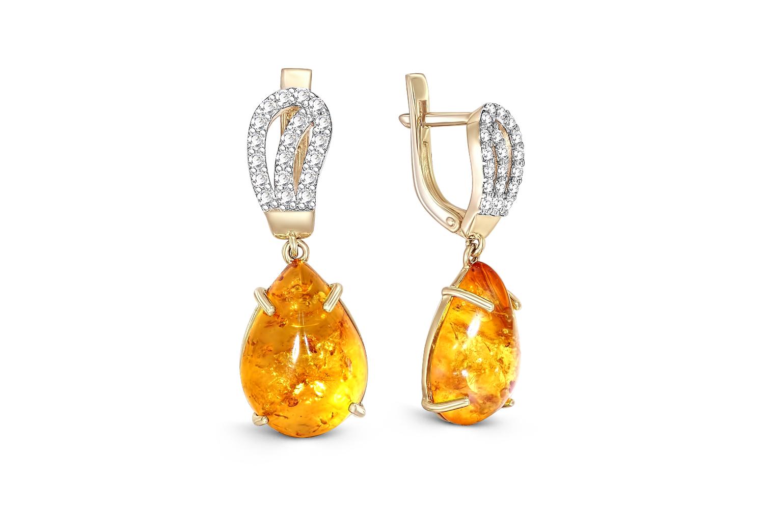 Мастера компании NEWGOLD, приложив всё свое мастерство и искусство, создали для Вас на нашем собственном производстве Серьги из жёлтого золота с янтарём и 38 фианитами.