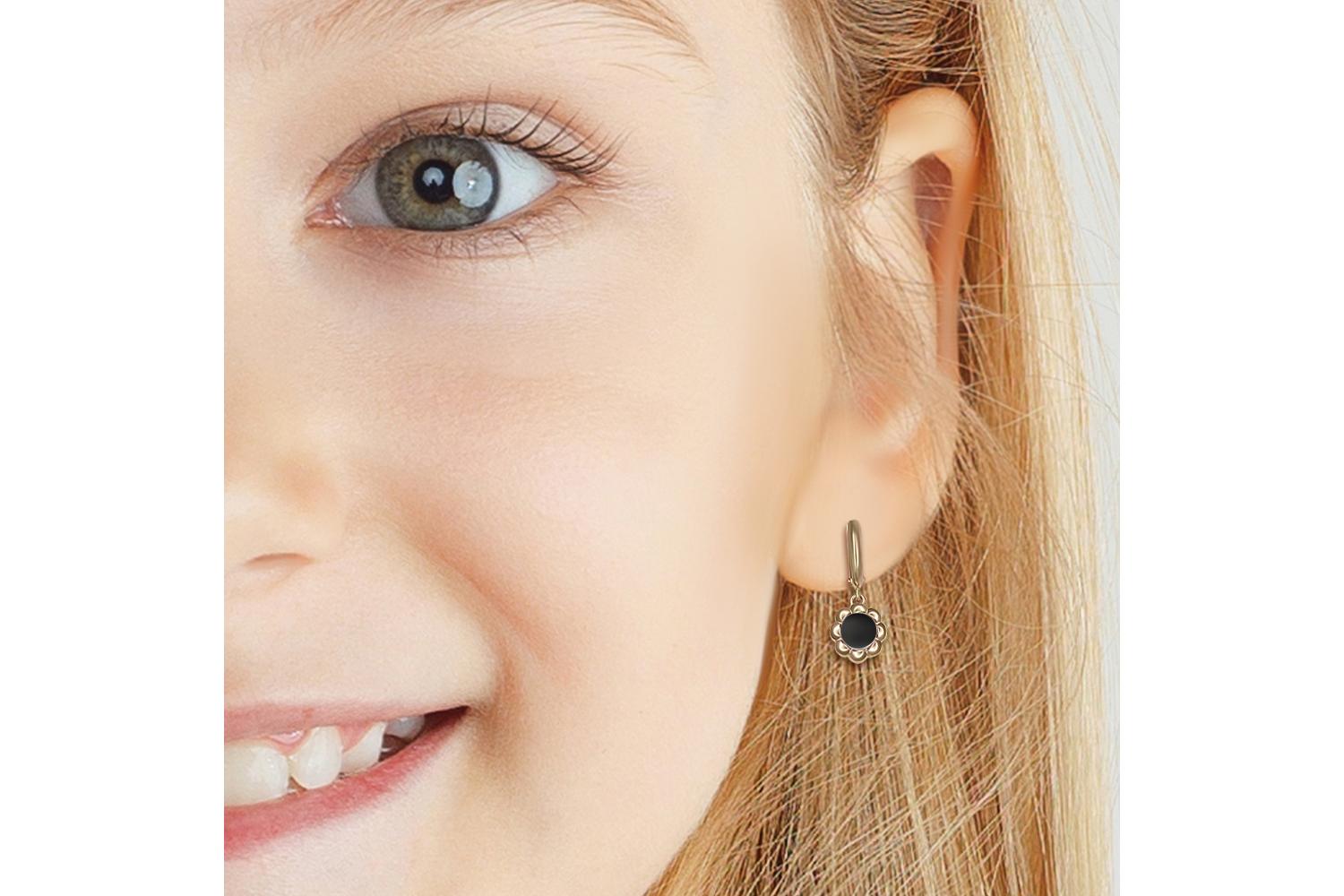 Мастера компании NEWGOLD, приложив всё свое мастерство и искусство, создали для Вас на нашем собственном производстве Детские серьги Цветы из жёлтого золота с 2 ониксами.