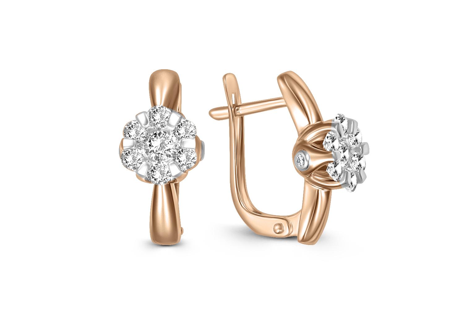 Закажите Серьги Малинки из красного золота с 18 бриллиантами с получением в Москве через курьерскую службу доставки напрямую с нашего производственного склада завода NEWGOLD!