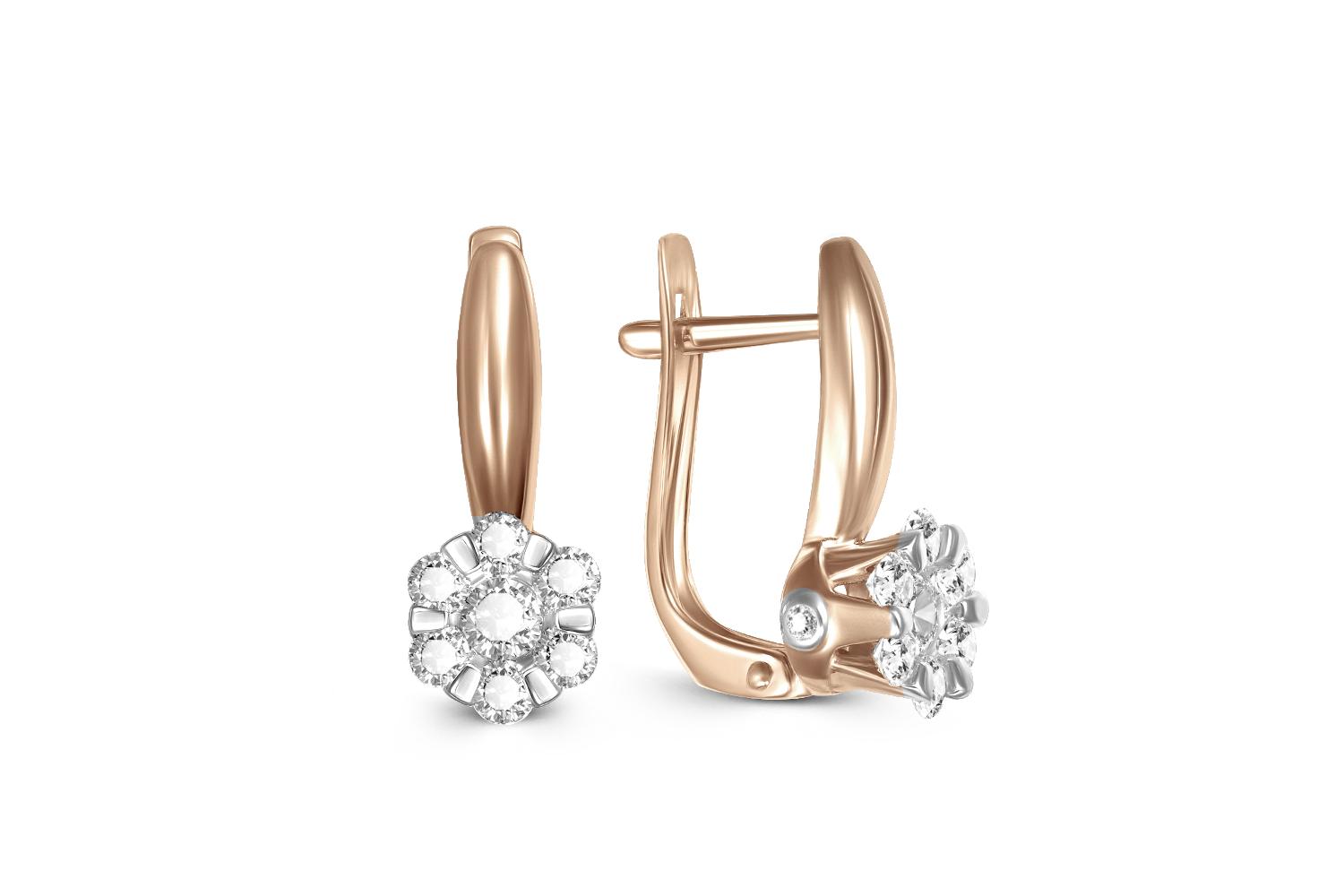 Серьги "малинка" с бриллиантами из красного золота 585 пробы из коллекции "LUXE" бренда NEWGOLD. Классические золотые серьги с английским замком, который отличается своей надёжностью и удобством при носке. Серьги золотые станут великолепным аксессуаром как для повседневного стиля, так и для торжественного случая. Прекрасный подарок для близкого человека: мамы, бабушки, дочери или подруги на любой праздник.