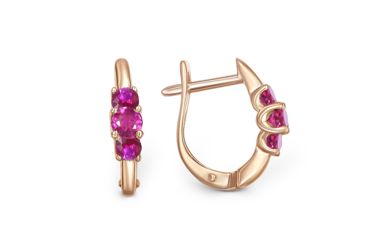 Мастера компании NEWGOLD, приложив всё свое мастерство и искусство, создали для Вас на нашем собственном производстве Серьги из красного золота с 6 рубинами.