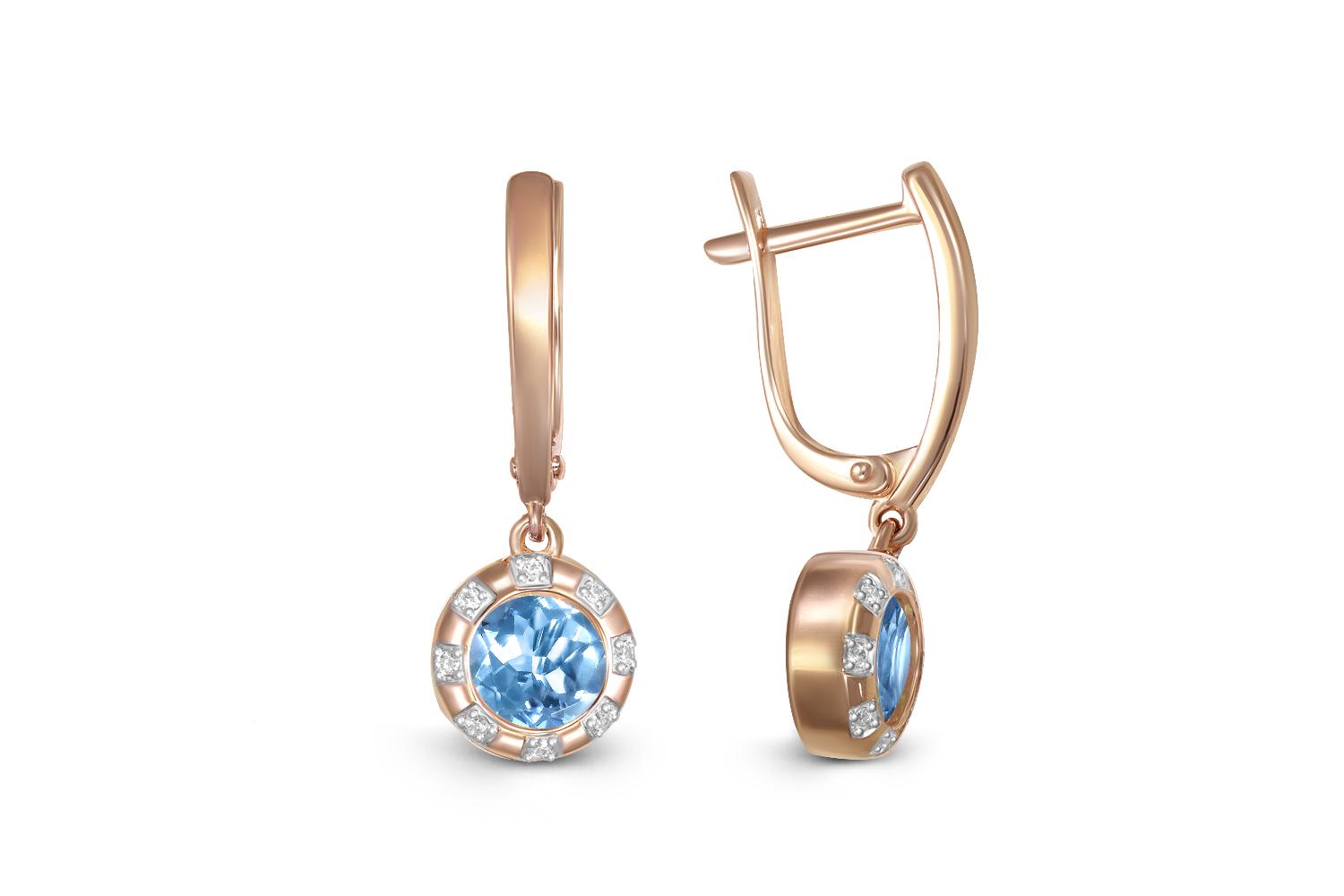 Закажите Серьги из красного золота с 2 топазами swiss и 16 фианитами с получением в Москве через курьерскую службу доставки напрямую с нашего производственного склада завода NEWGOLD!