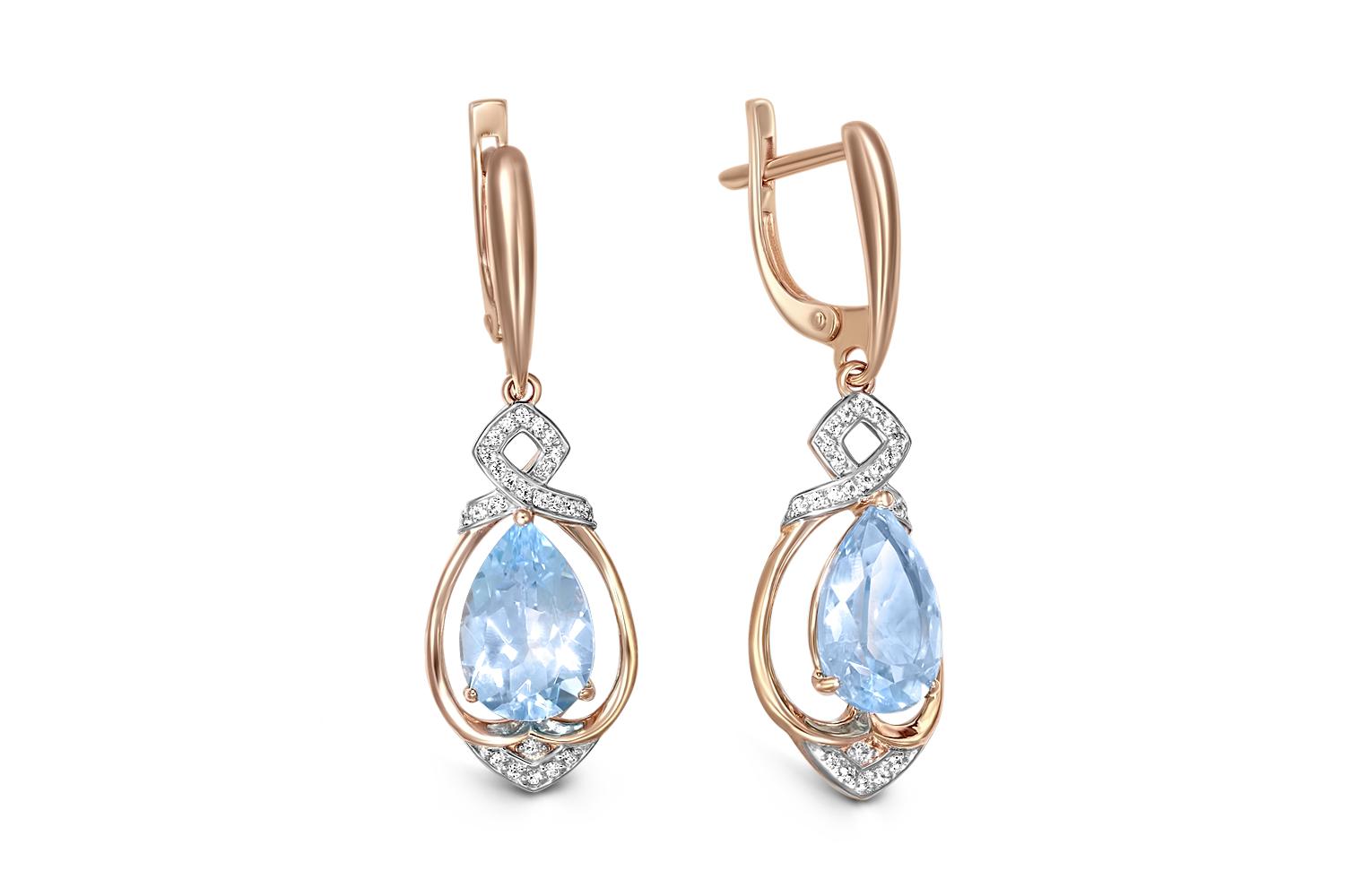 Закажите Серьги из красного золота с 2 топазами sky и 48 фианитами с получением в Москве через курьерскую службу доставки напрямую с нашего производственного склада завода NEWGOLD!