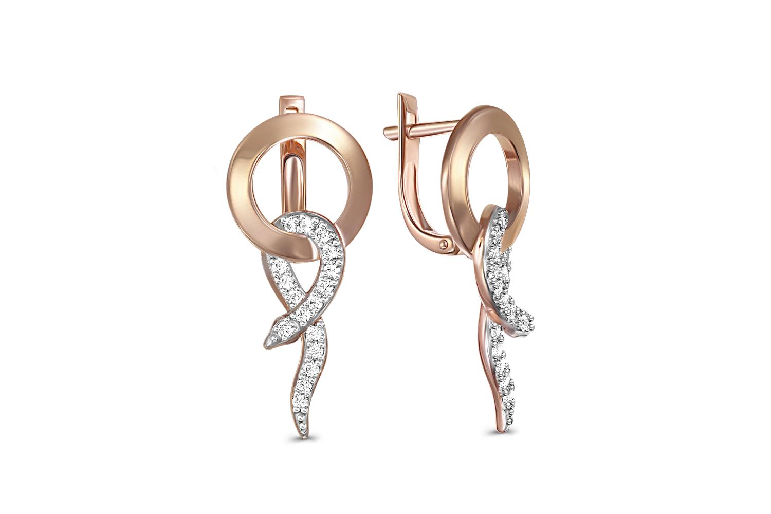 Мастера компании NEWGOLD, приложив всё свое мастерство и искусство, создали для Вас на нашем собственном производстве Серьги Змеи из красного золота с 34 фианитами.
