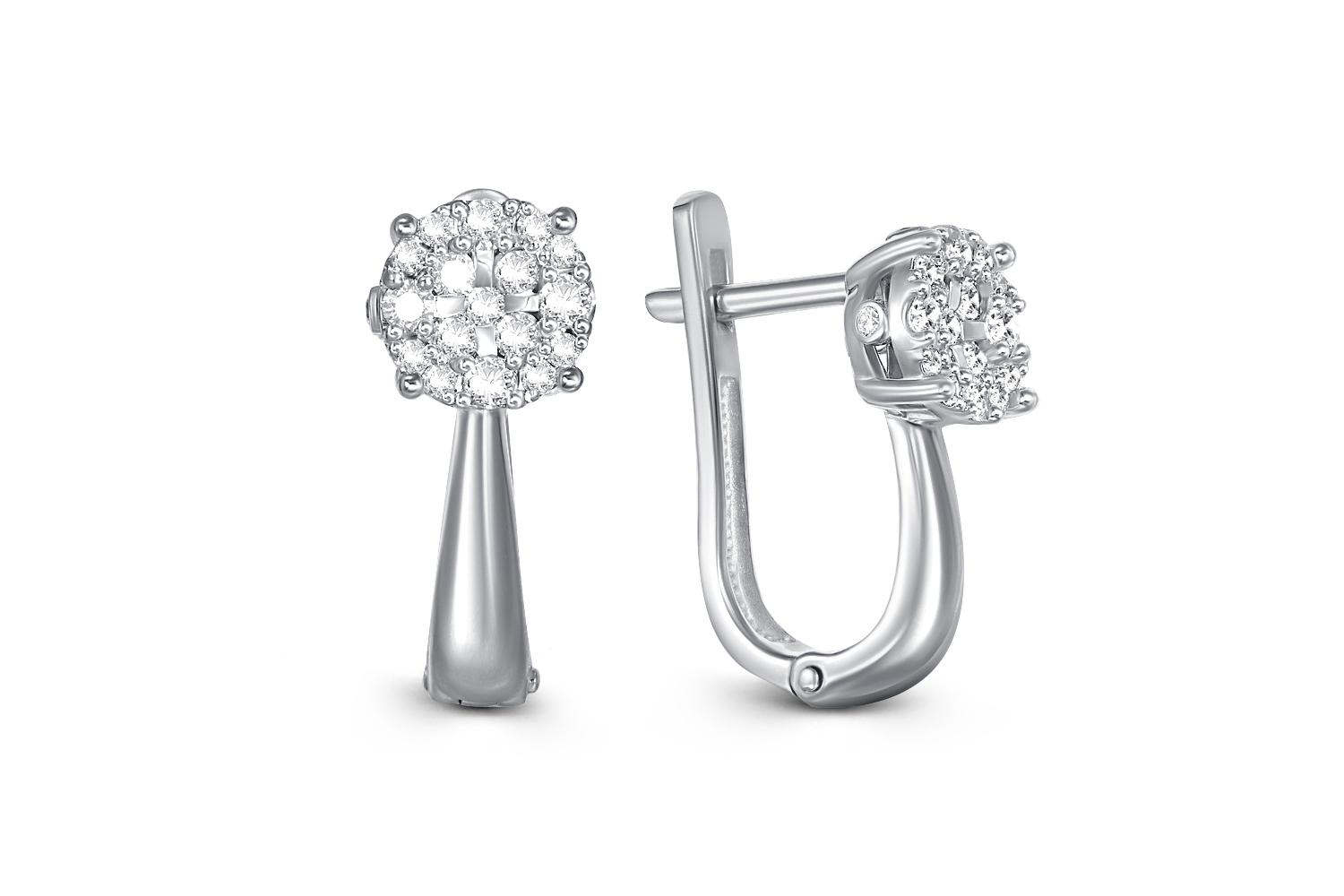 Золоты серьги из белого золота 585 пробы с бриллиантами. Классические серьги одновременно торжественены и сдержаны, а потому серьги золотые в такой стилистике отлично подходят как для обычного офисного лука, так и для роскошного платья в пол для вечера. Станут идеальным подарком для близкого человека: мамы, бабушки, дочери или подруге. Украшения приходят в комплекте с биркой и памяткой в транспортной коробке.