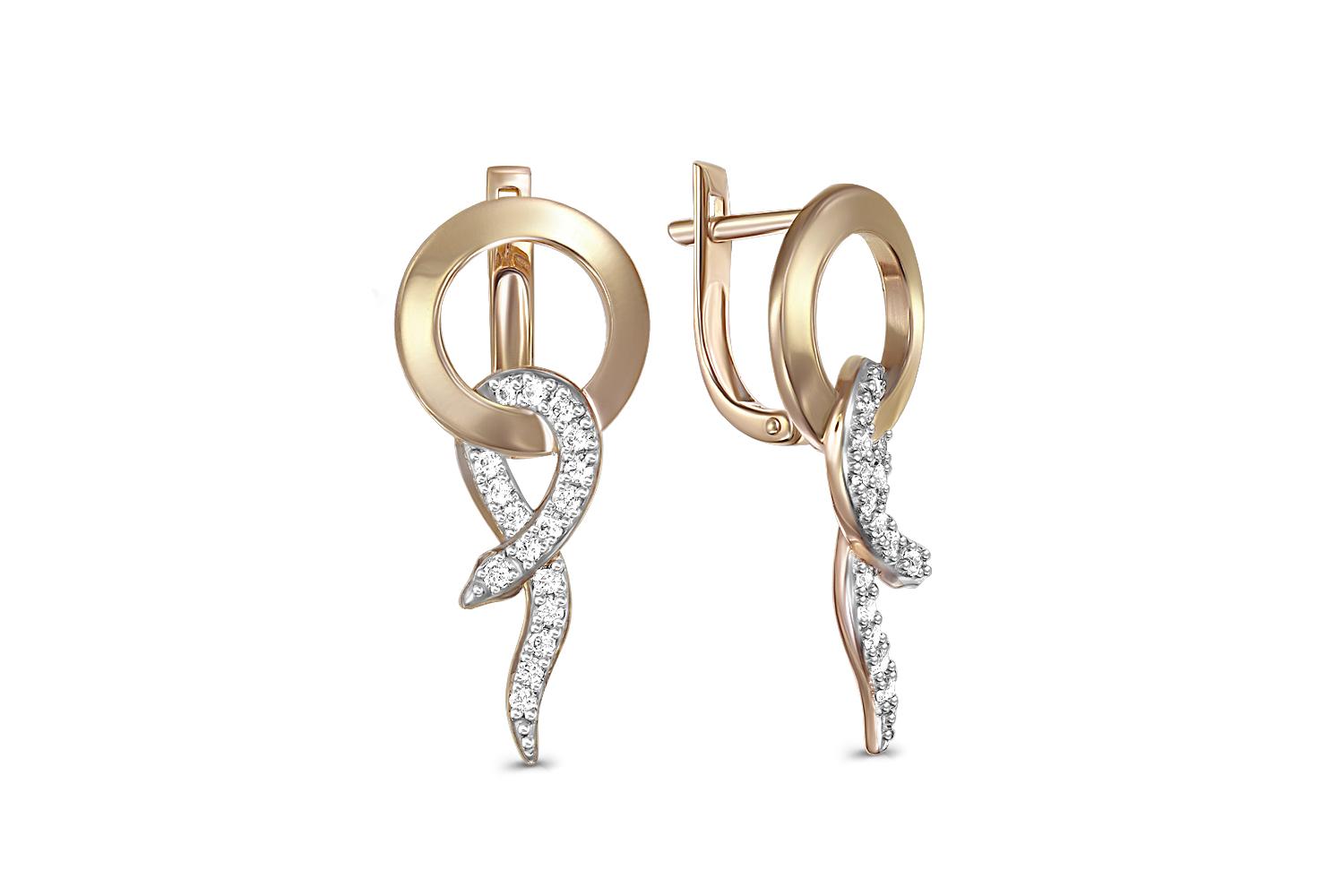 Мастера компании NEWGOLD, приложив всё свое мастерство и искусство, создали для Вас на нашем собственном производстве Серьги Змеи из жёлтого золота с 34 фианитами.