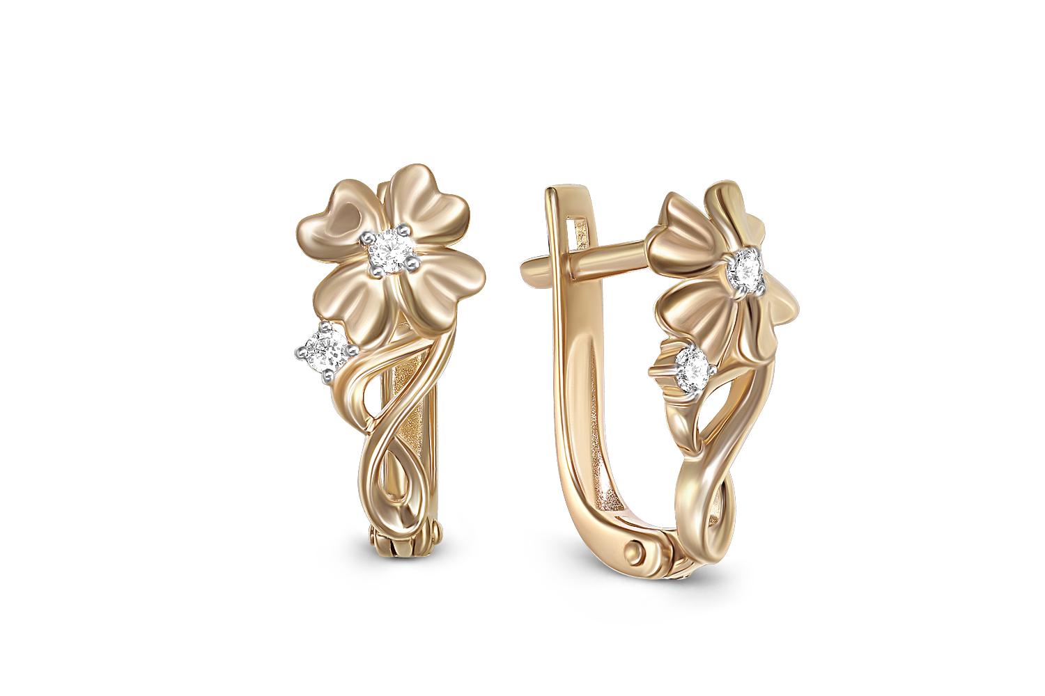 Мастера компании NEWGOLD, приложив всё свое мастерство и искусство, создали для Вас на нашем собственном производстве Серьги Цветы из жёлтого золота с 4 фианитами.