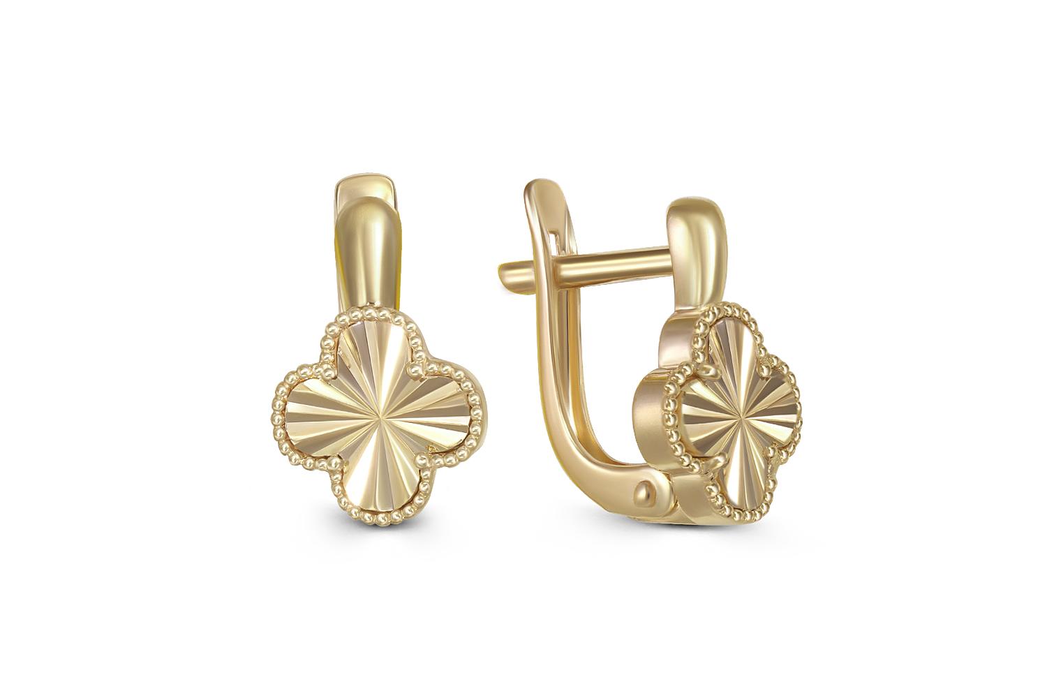 Мастера компании NEWGOLD, приложив всё свое мастерство и искусство, создали для Вас на нашем собственном производстве Серьги Клевер из жёлтого золота без вставок.