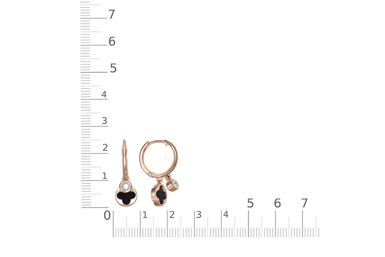 Коллекция: Blossom. Металл: Золото, цвет: Красный , проба: 585. Вставки: Оникс чёрный, количество 2 шт. , огранка пластина-круг, размер 7 мм ; Фианит б/цв, количество 2 шт.