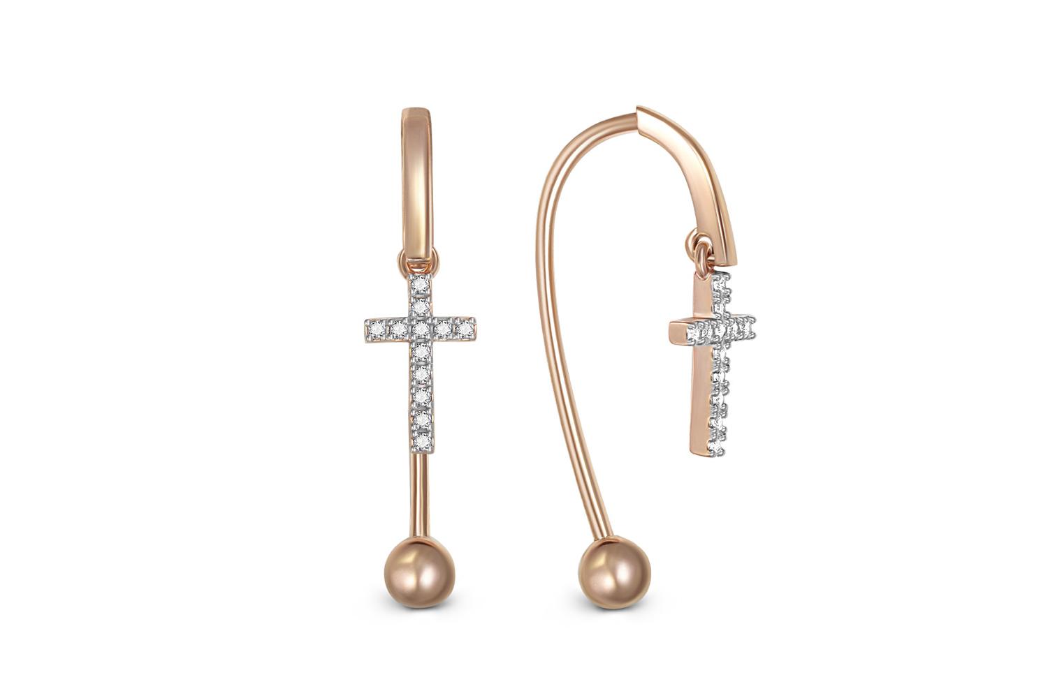 Мастера компании NEWGOLD, приложив всё свое мастерство и искусство, создали для Вас на нашем собственном производстве Серьги Кресты из красного золота с 24 фианитами.