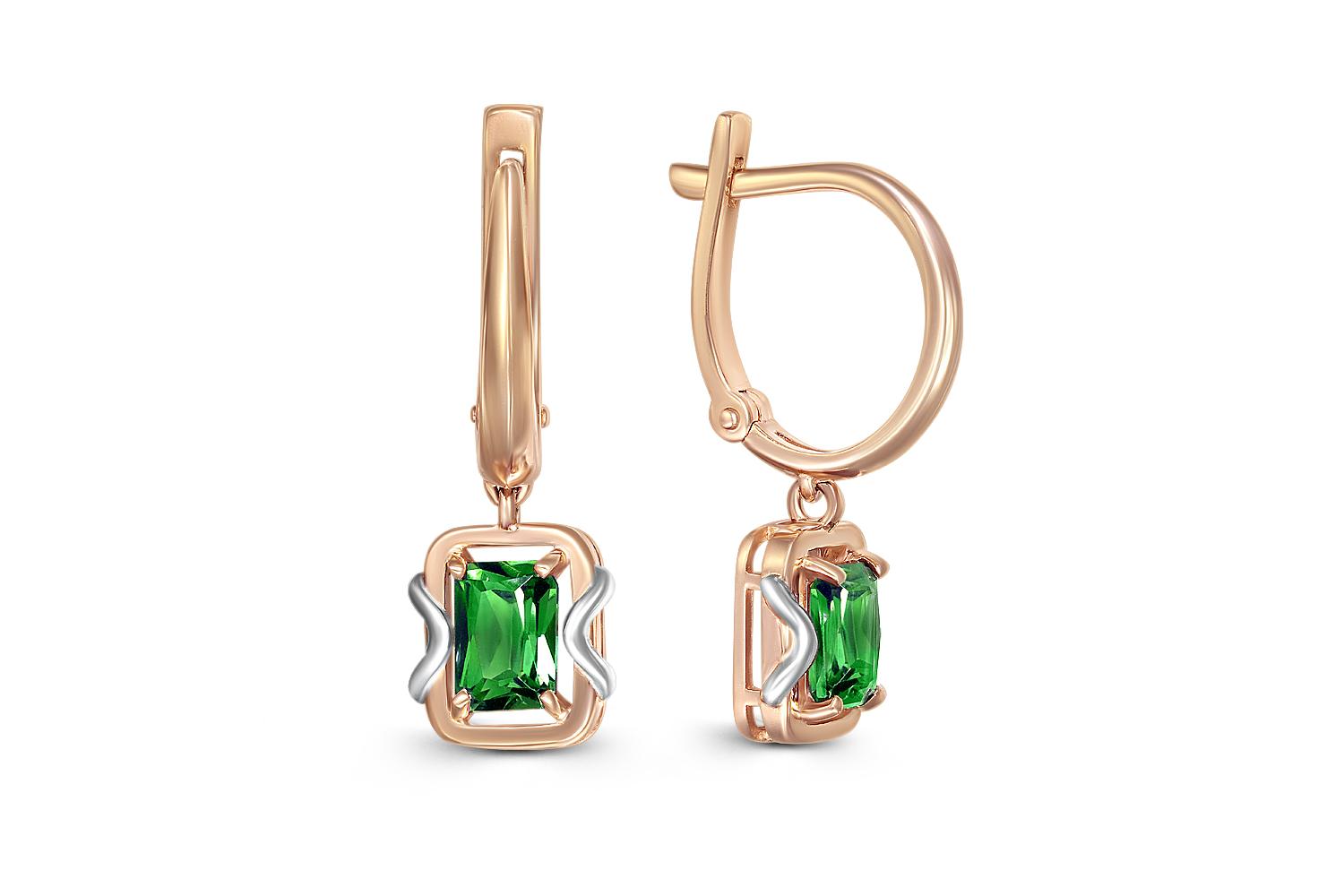 Закажите Серьги из красного золота с 2 изумрудами с получением в Москве через курьерскую службу доставки напрямую с нашего производственного склада завода NEWGOLD!