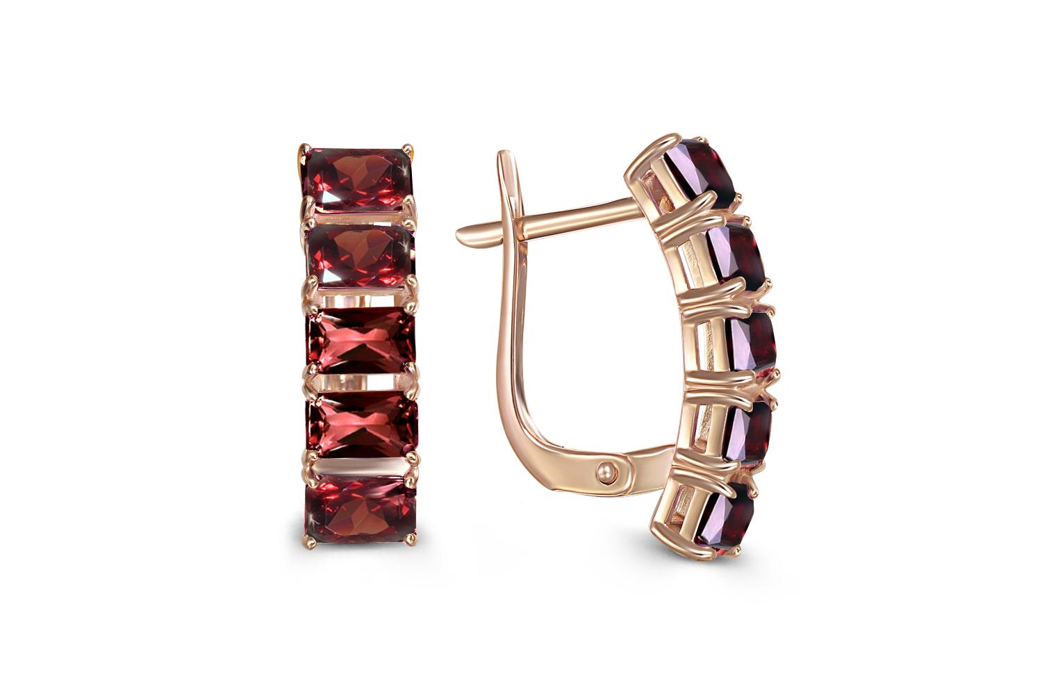 Мастера компании NEWGOLD, приложив всё свое мастерство и искусство, создали для Вас на нашем собственном производстве Серьги из красного золота с 10 гранатами.