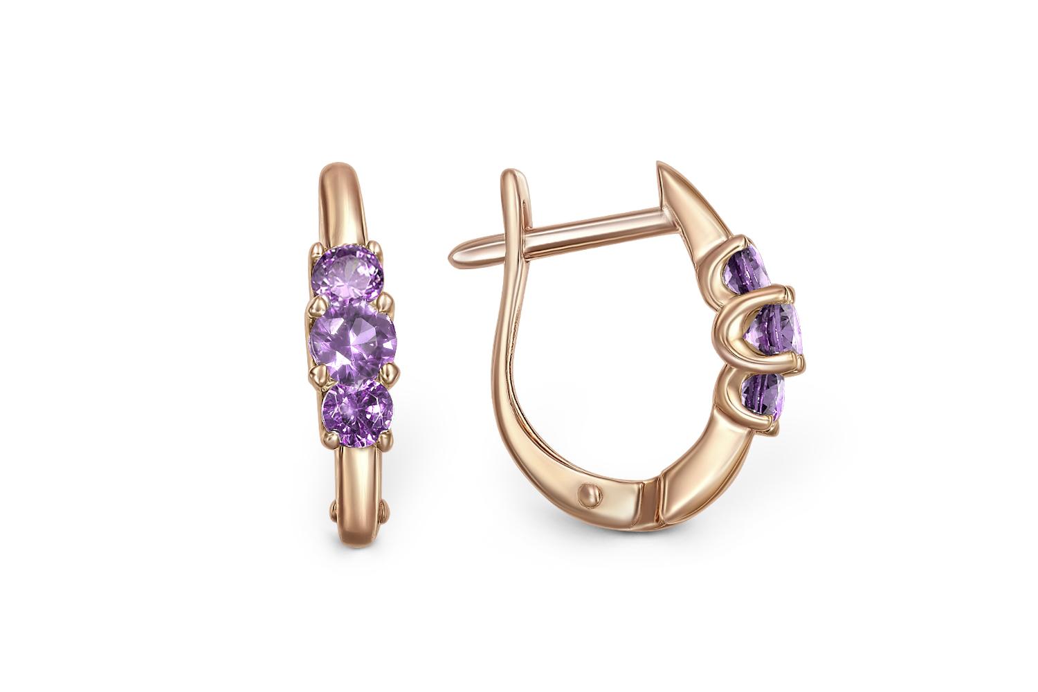 Мастера компании NEWGOLD, приложив всё свое мастерство и искусство, создали для Вас на нашем собственном производстве Серьги из красного золота с 6 аметистами.