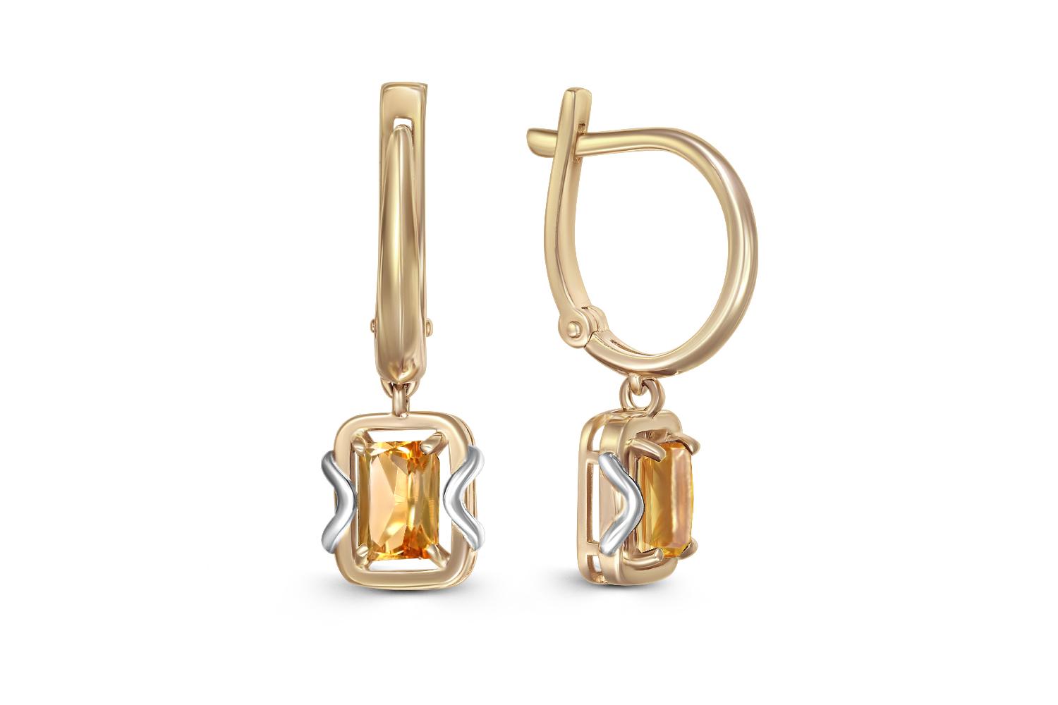 Закажите Серьги из жёлтого золота с 2 цитринами с получением в Москве через курьерскую службу доставки напрямую с нашего производственного склада завода NEWGOLD!