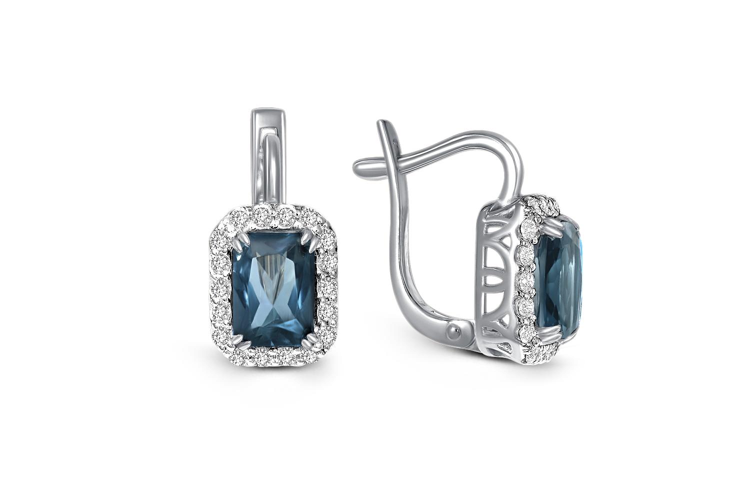 Мастера компании NEWGOLD, приложив всё свое мастерство и искусство, создали для Вас на нашем собственном производстве Серьги из белого золота с 2 топазами лондон и 36 фианитами.