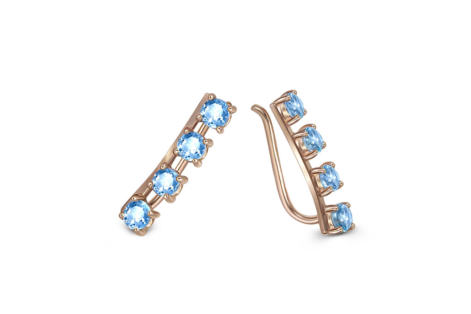 Мастера компании NEWGOLD, приложив всё свое мастерство и искусство, создали для Вас на нашем собственном производстве Серьги Дорожки из красного золота с 8 топазами swiss.