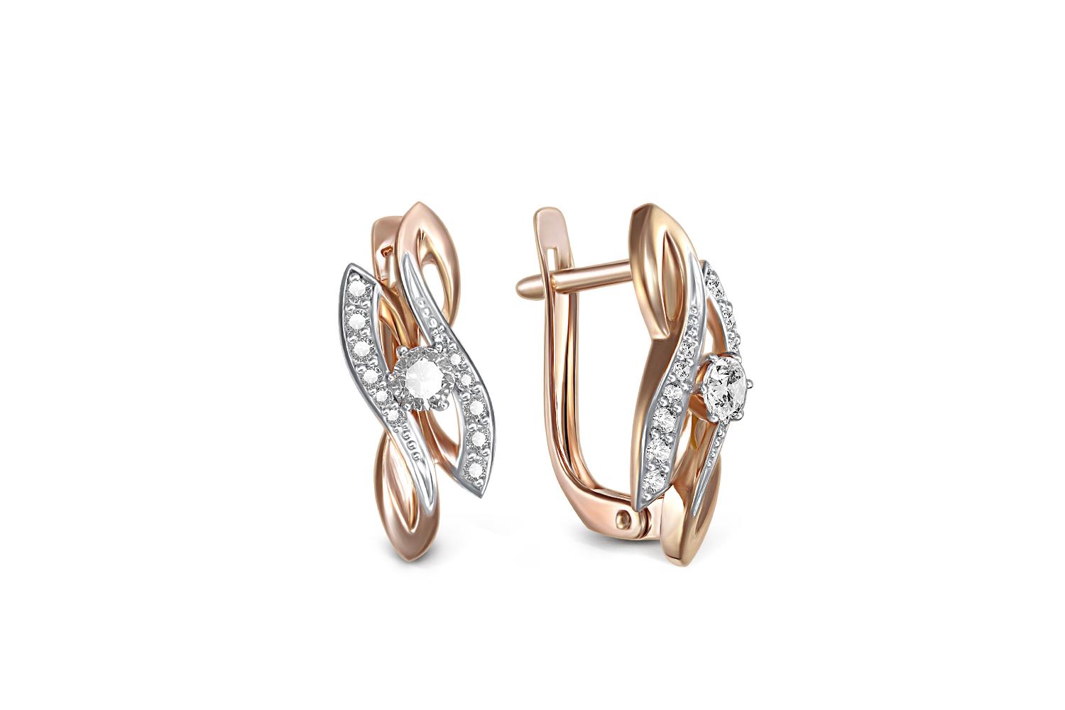 Мастера компании NEWGOLD, приложив всё свое мастерство и искусство, создали для Вас на нашем собственном производстве Серьги из красного золота с 26 фианитами.