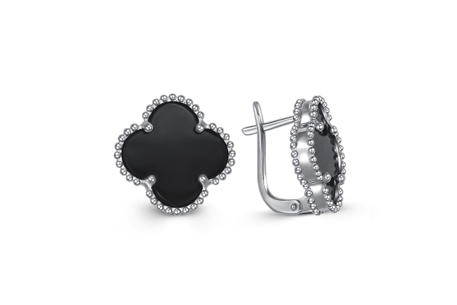 Мастера компании NEWGOLD, приложив всё свое мастерство и искусство, создали для Вас на нашем собственном производстве Серьги Клевер из белого золота с 2 ониксами.