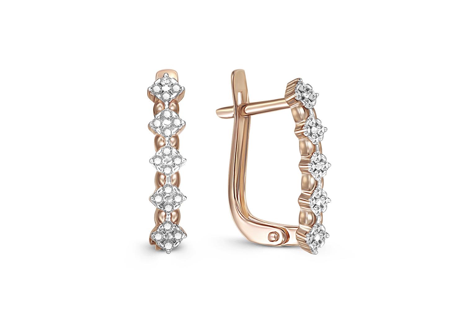 Мастера компании NEWGOLD, приложив всё свое мастерство и искусство, создали для Вас на нашем собственном производстве Серьги из красного золота с 40 фианитами.