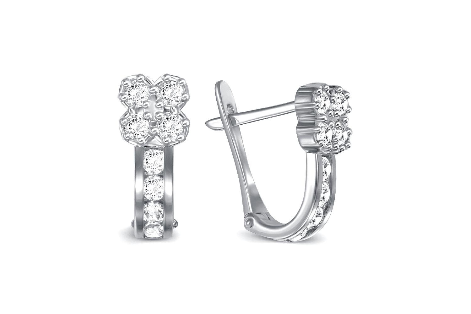 Мастера компании NEWGOLD, приложив всё свое мастерство и искусство, создали для Вас на нашем собственном производстве Серьги детские Цветы из белого золота с 18 фианитами.