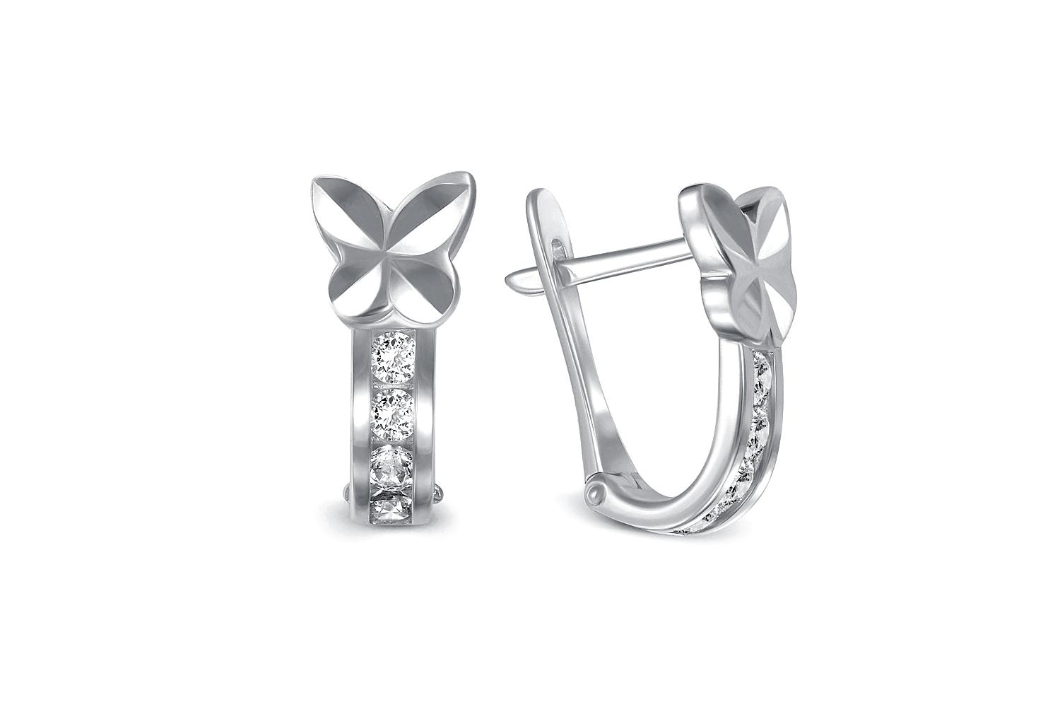 Мастера компании NEWGOLD, приложив всё свое мастерство и искусство, создали для Вас на нашем собственном производстве Детские серьги Бабочки из белого золота с 8 фианитами.