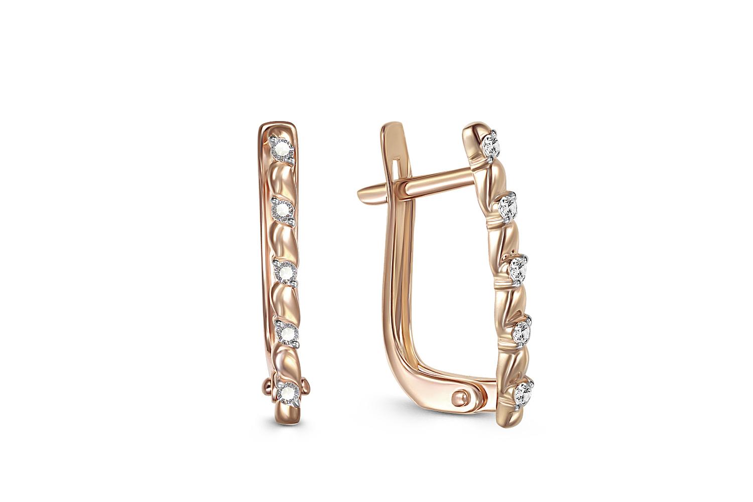 Мастера компании NEWGOLD, приложив всё свое мастерство и искусство, создали для Вас на нашем собственном производстве Серьги Дорожки из красного золота с 10 фианитами.