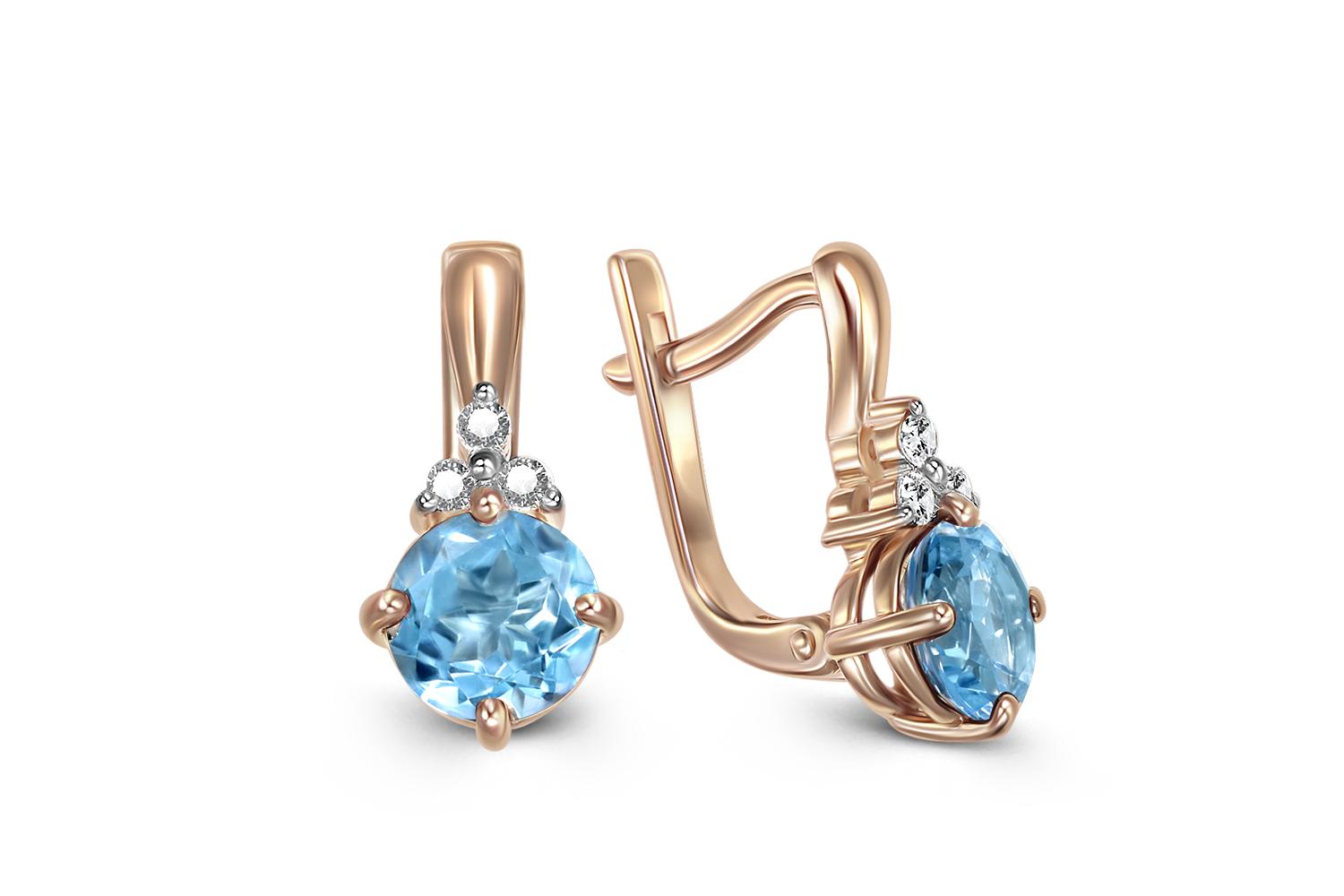 Мастера компании NEWGOLD, приложив всё свое мастерство и искусство, создали для Вас на нашем собственном производстве Серьги из красного золота с 2 топазами swiss и 6 фианитами.