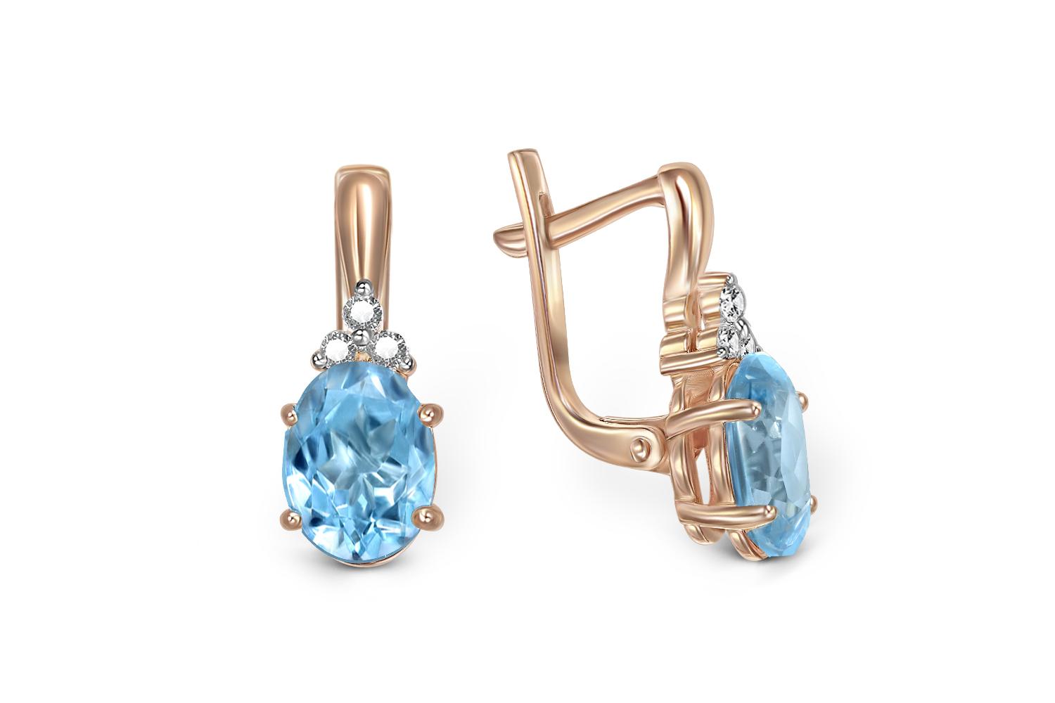 Закажите Серьги из красного золота с 2 топазами swiss и 6 фианитами с получением в Москве через курьерскую службу доставки напрямую с нашего производственного склада завода NEWGOLD!