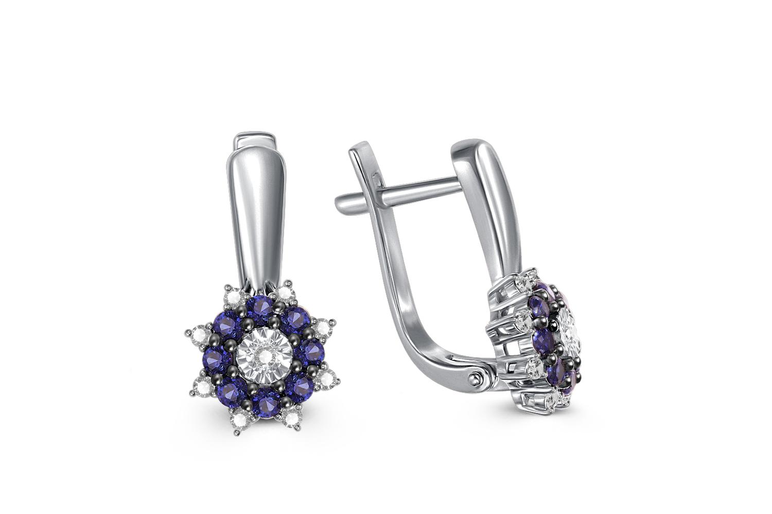 Мастера компании NEWGOLD, приложив всё свое мастерство и искусство, создали для Вас на нашем собственном производстве Серьги из белого золота с 16 сапфирами и 18 бриллиантами.