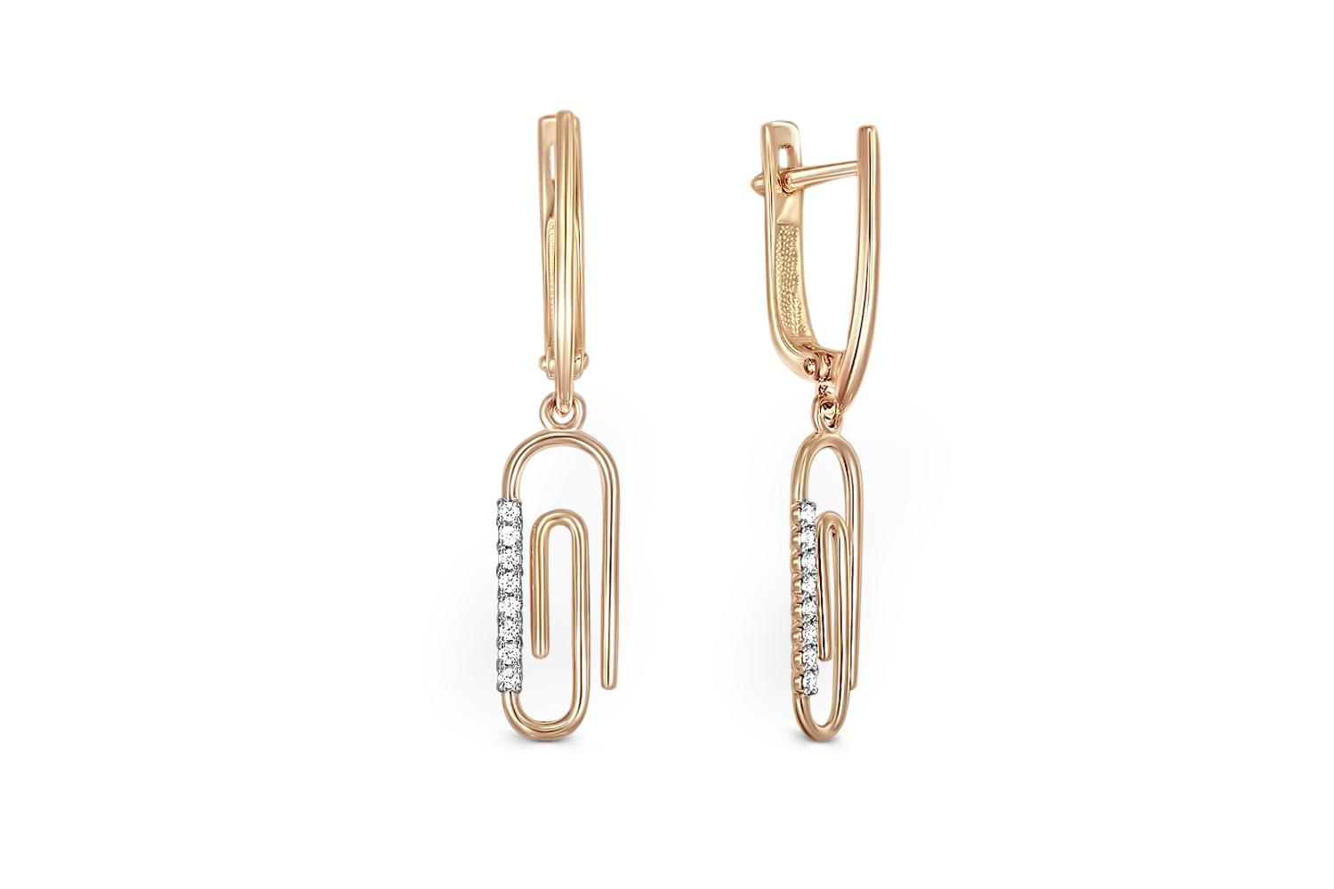 Мастера компании NEWGOLD, приложив всё свое мастерство и искусство, создали для Вас на нашем собственном производстве Серьги Скрепки из красного золота с 16 бриллиантами.