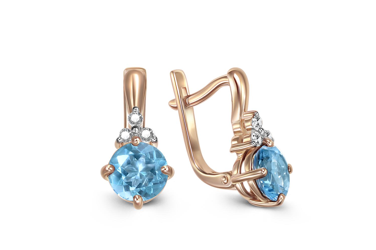 Мастера компании NEWGOLD, приложив всё свое мастерство и искусство, создали для Вас на нашем собственном производстве Серьги из красного золота с 2 топазами swiss и 6 фианитами.