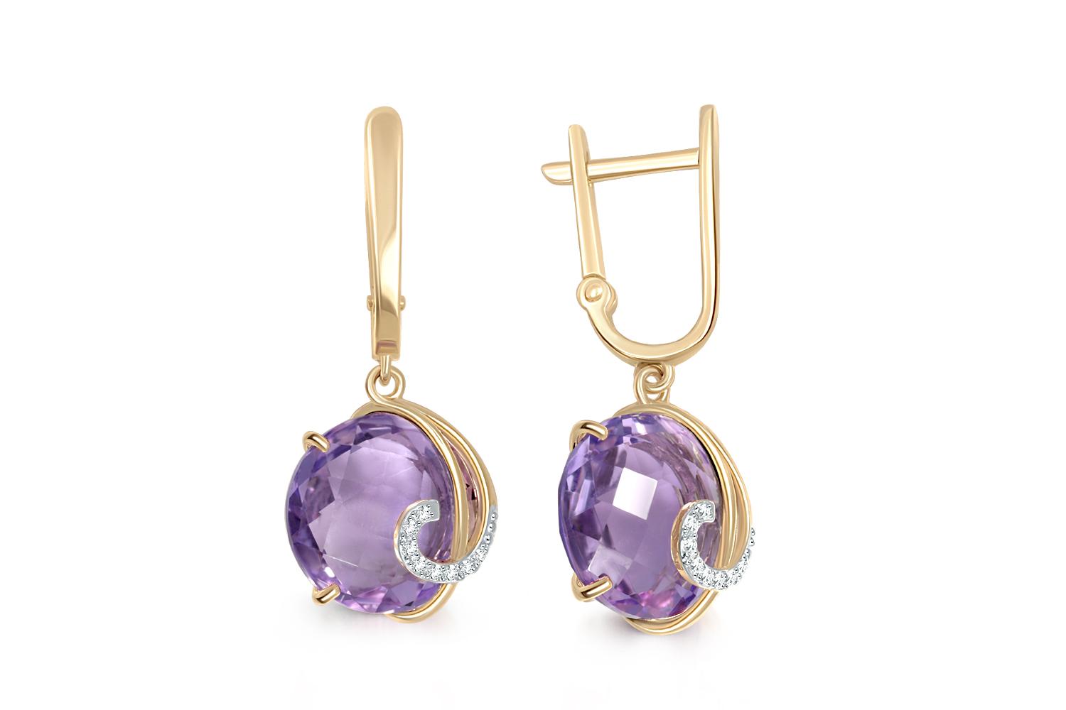 Мастера компании NEWGOLD, приложив всё свое мастерство и искусство, создали для Вас на нашем собственном производстве Серьги из жёлтого золота с 18 аметистами.