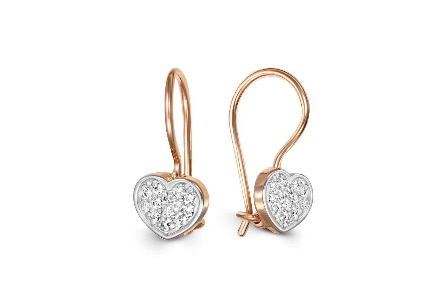 Мастера компании NEWGOLD, приложив всё свое мастерство и искусство, создали для Вас на нашем собственном производстве Детские серьги Сердца из красного золота с 26 фианитами.