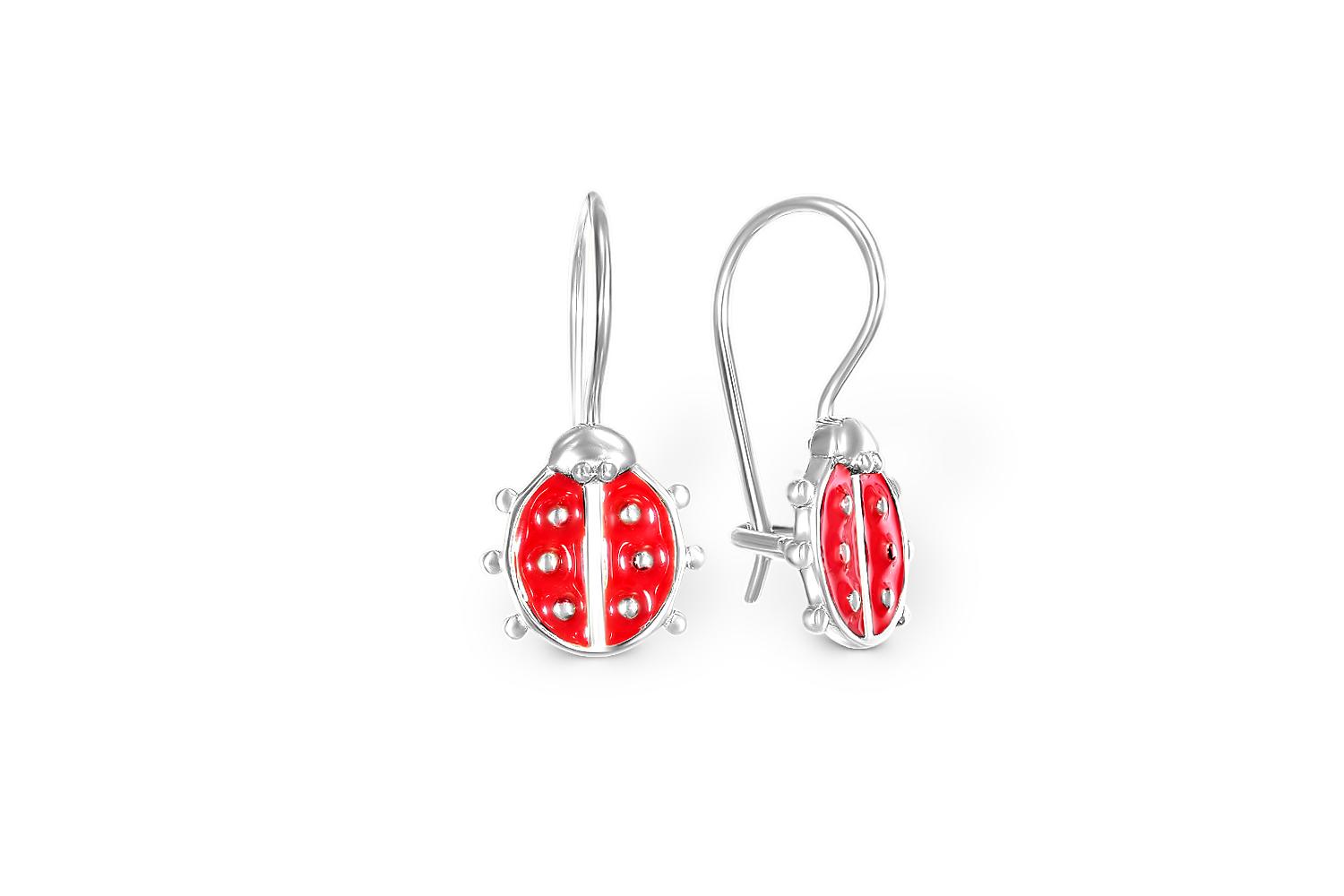 Мастера компании NEWGOLD, приложив всё свое мастерство и искусство, создали для Вас на нашем собственном производстве Детские серьги Божьи коровки из белого золота без вставок.