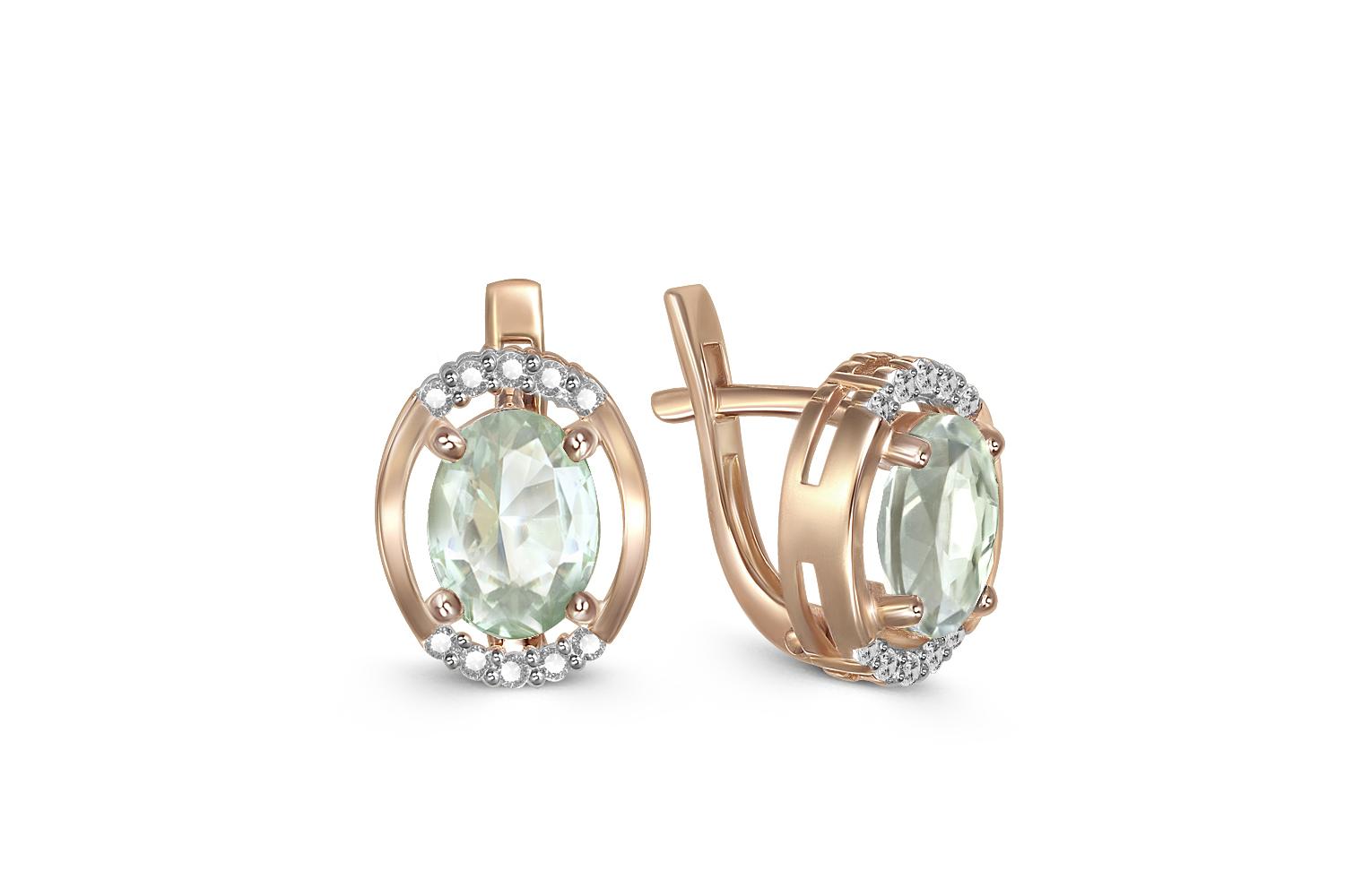 Аметист зеленый натуральный, количество 2 шт., огранка овал, размер 8ˣ6 ; Фианит б/цв, количество 20 шт., огранка круг, размер 1,25 мм