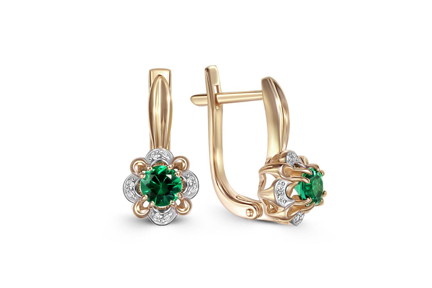 Мастера компании NEWGOLD, приложив всё свое мастерство и искусство, создали для Вас на нашем собственном производстве Серьги Цветы из жёлтого золота с 2 изумрудами и 16 бриллиантами.