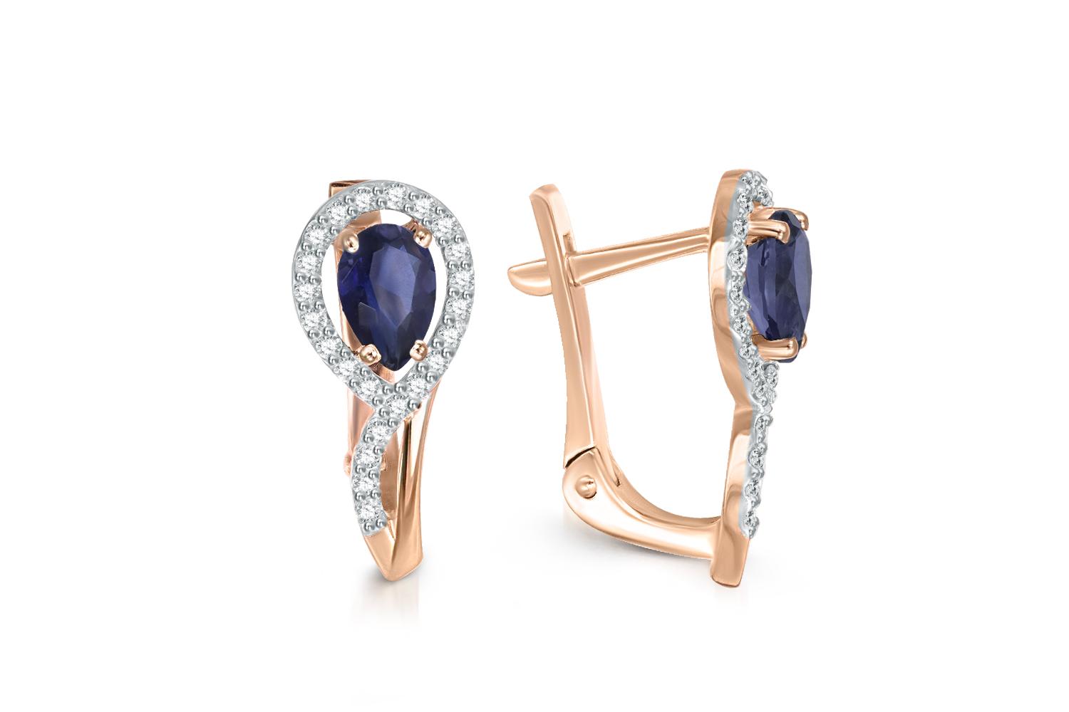 Мастера компании NEWGOLD, приложив всё свое мастерство и искусство, создали для Вас на нашем собственном производстве Серьги из красного золота с 2 сапфирами и 48 бриллиантами.
