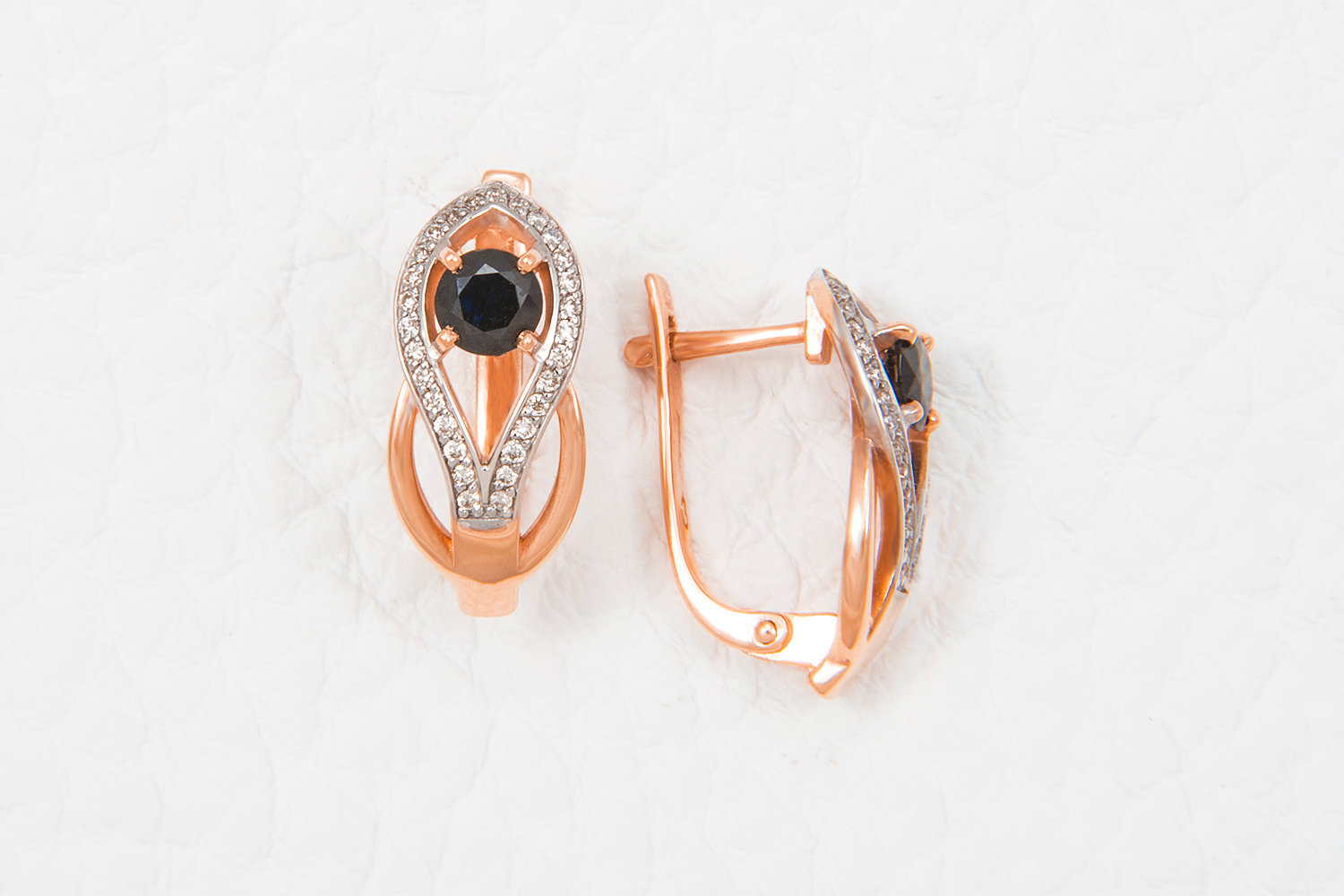 Мастера компании NEWGOLD, приложив всё свое мастерство и искусство, создали для Вас на нашем собственном производстве Серьги из красного золота с 2 сапфирами и 58 бриллиантами.