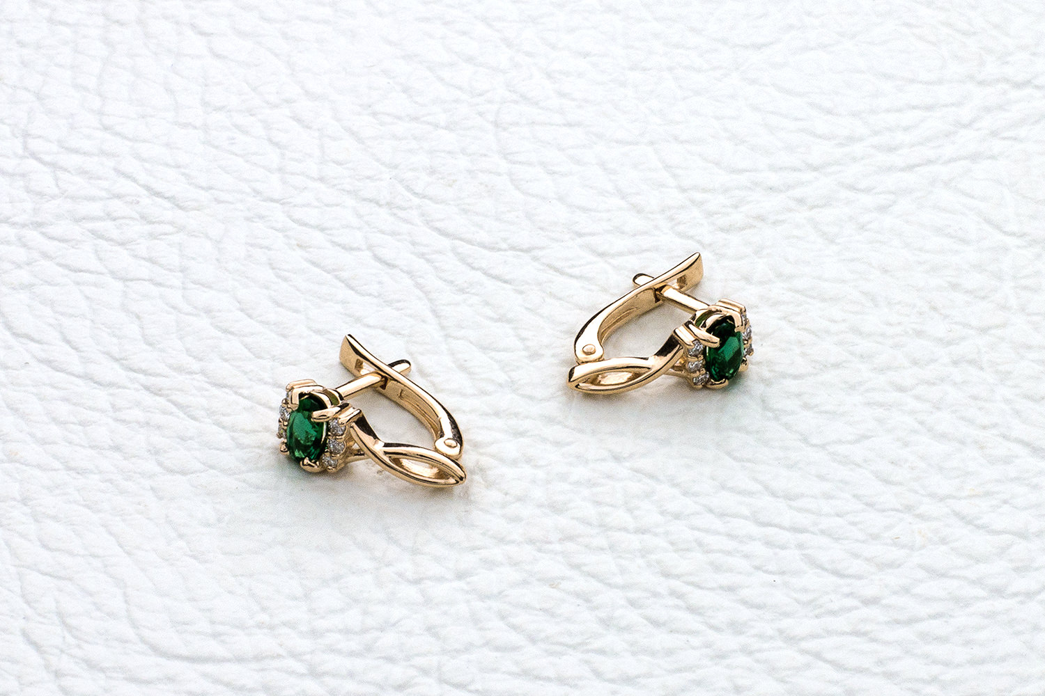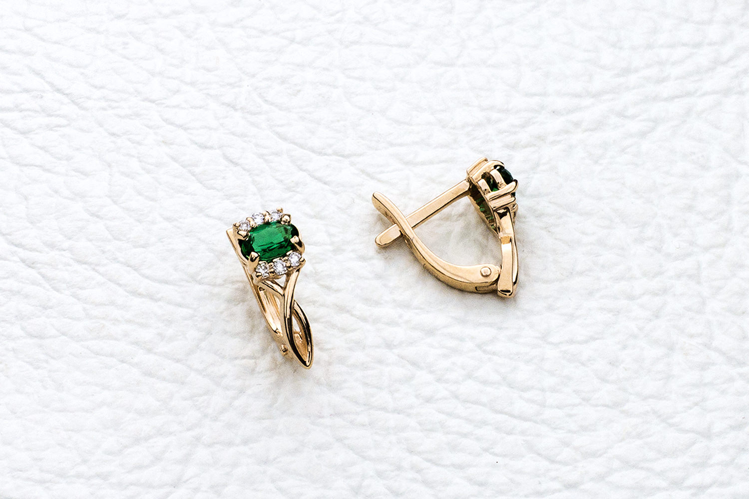 Мастера компании NEWGOLD, приложив всё свое мастерство и искусство, создали для Вас на нашем собственном производстве Серьги из красного золота с 2 изумрудами и 12 бриллиантами.