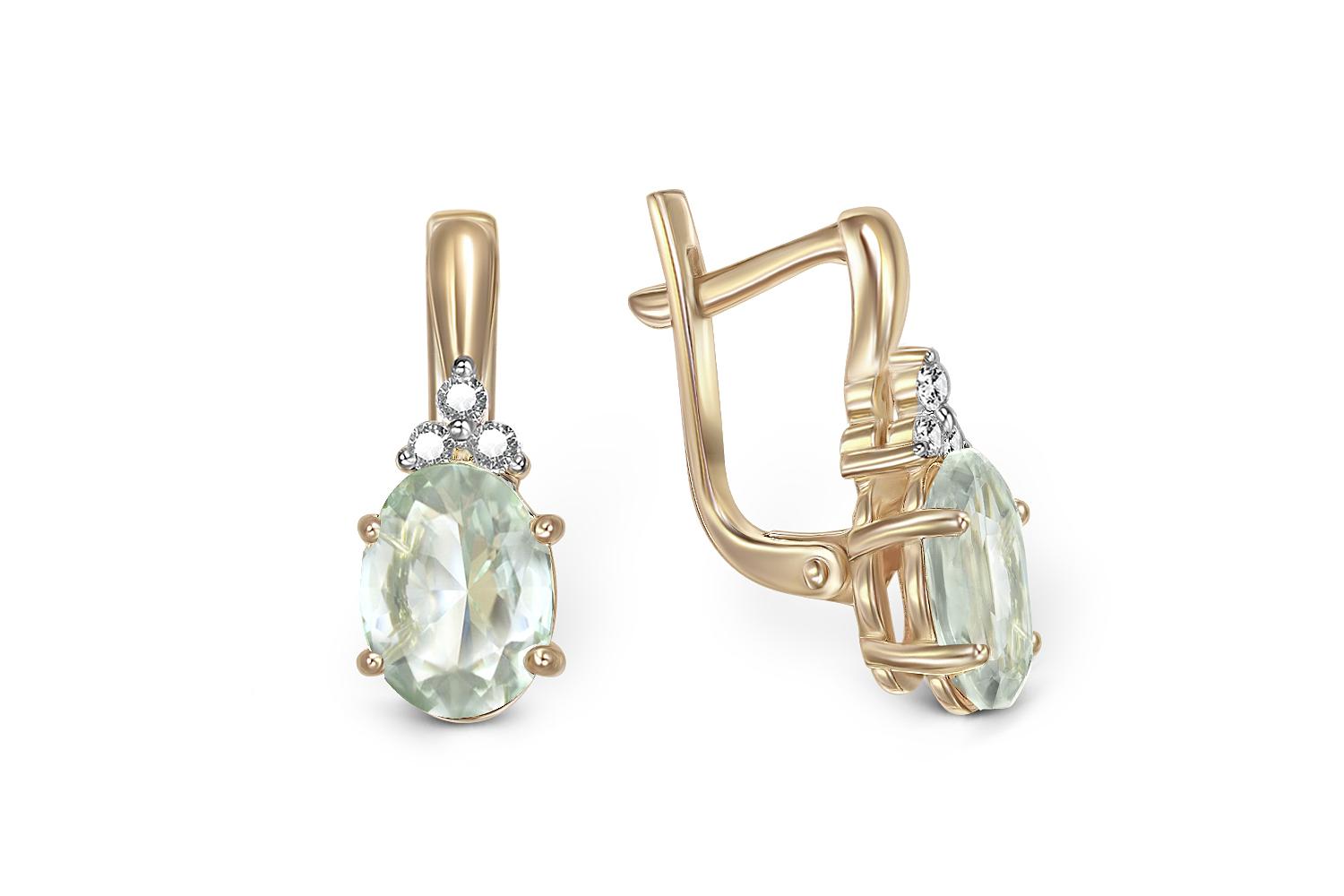 Аметист зеленый натуральный, количество 2 шт., огранка овал, размер 8ˣ6 ; Фианит б/цв, количество 6 шт., огранка круг, размер 1,5 мм