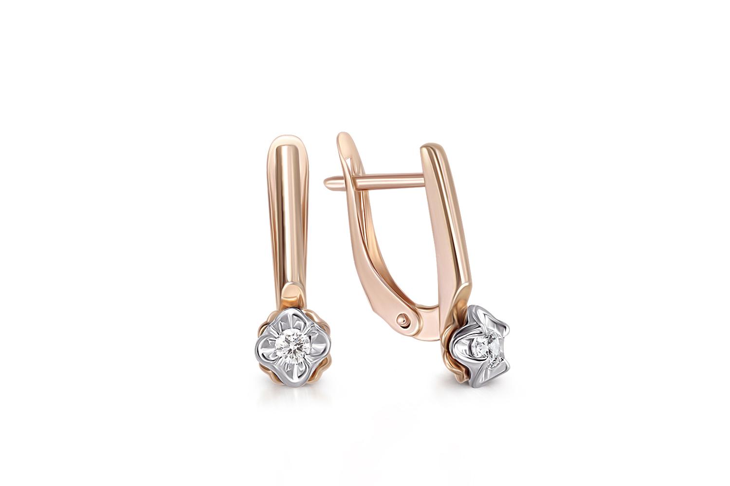 Модель современная и подойдет как для повседневной носки, так и для праздничных мероприятий. Сверкающий бриллиант высокого качества привносит блеск и придает сережкам дополнительное очарование. Женские серёжки оснащены надёжной английской застежкой, обеспечивающей прочность крепления. Золотые серёжки прекрасно сочетаются с разнообразными нарядами, подчёркивая естественную красоту женщины.