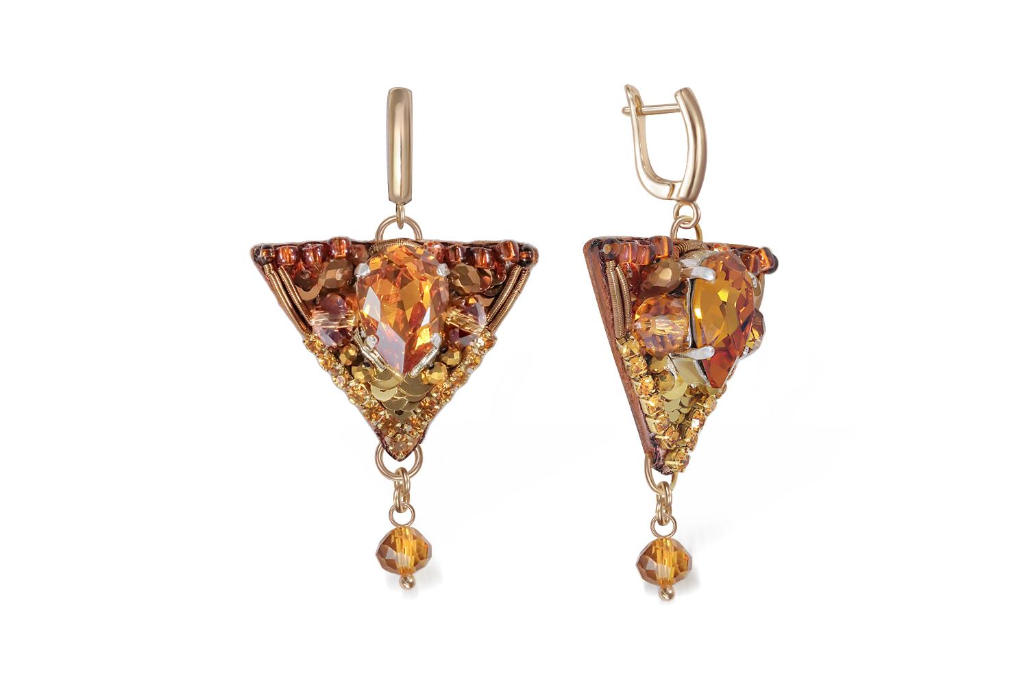 Мастера компании NEWGOLD, приложив всё свое мастерство и искусство, создали для Вас на нашем собственном производстве Бижутерные серьги Треугольные янтарные.