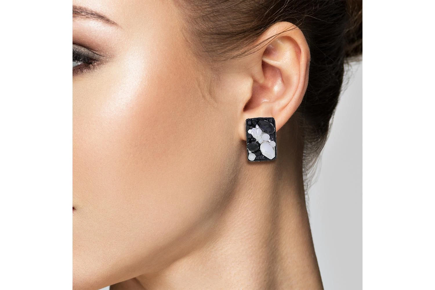 Мастера компании NEWGOLD, приложив всё свое мастерство и искусство, создали для Вас на нашем собственном производстве Бижутерные серьги Омега черно-белый.