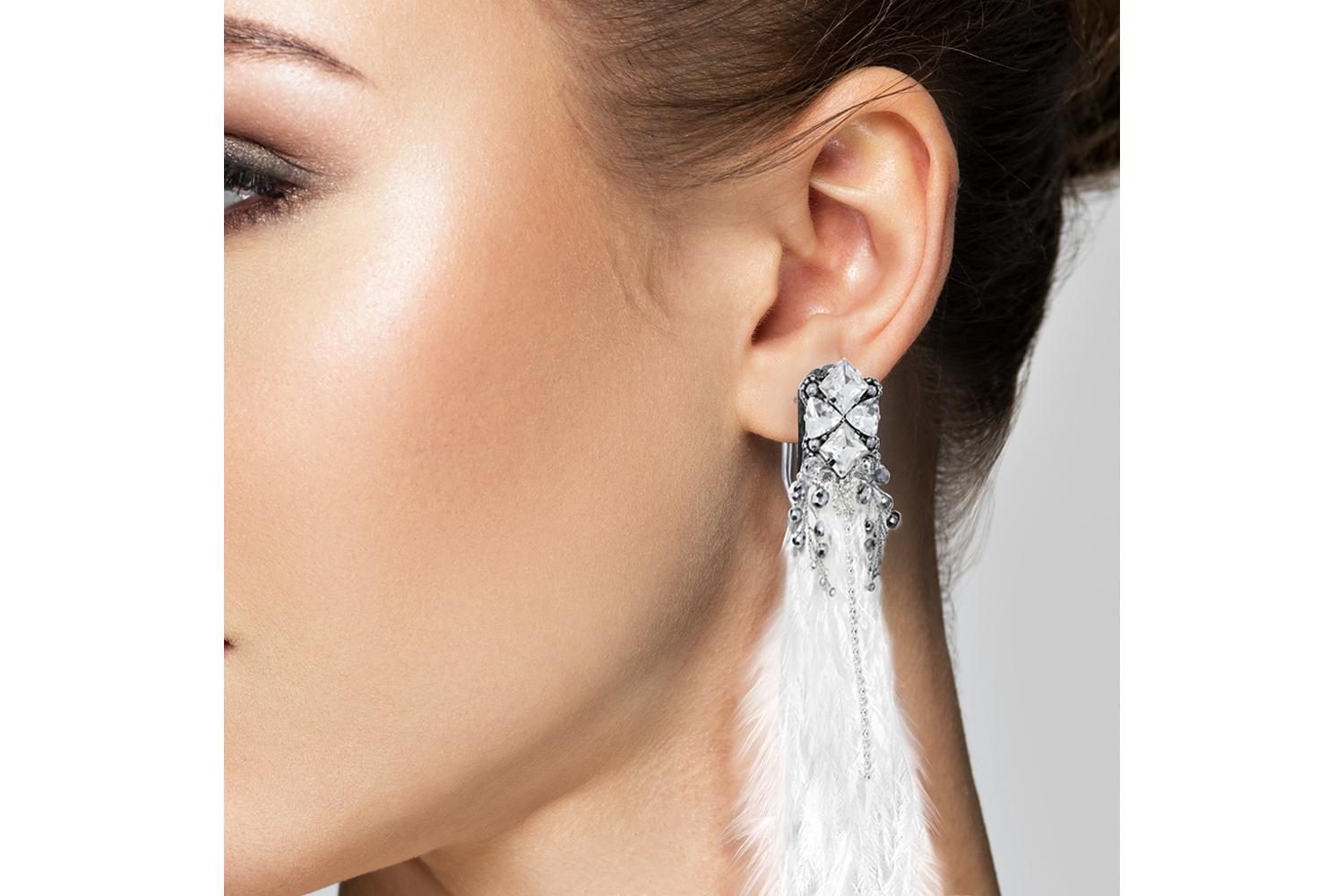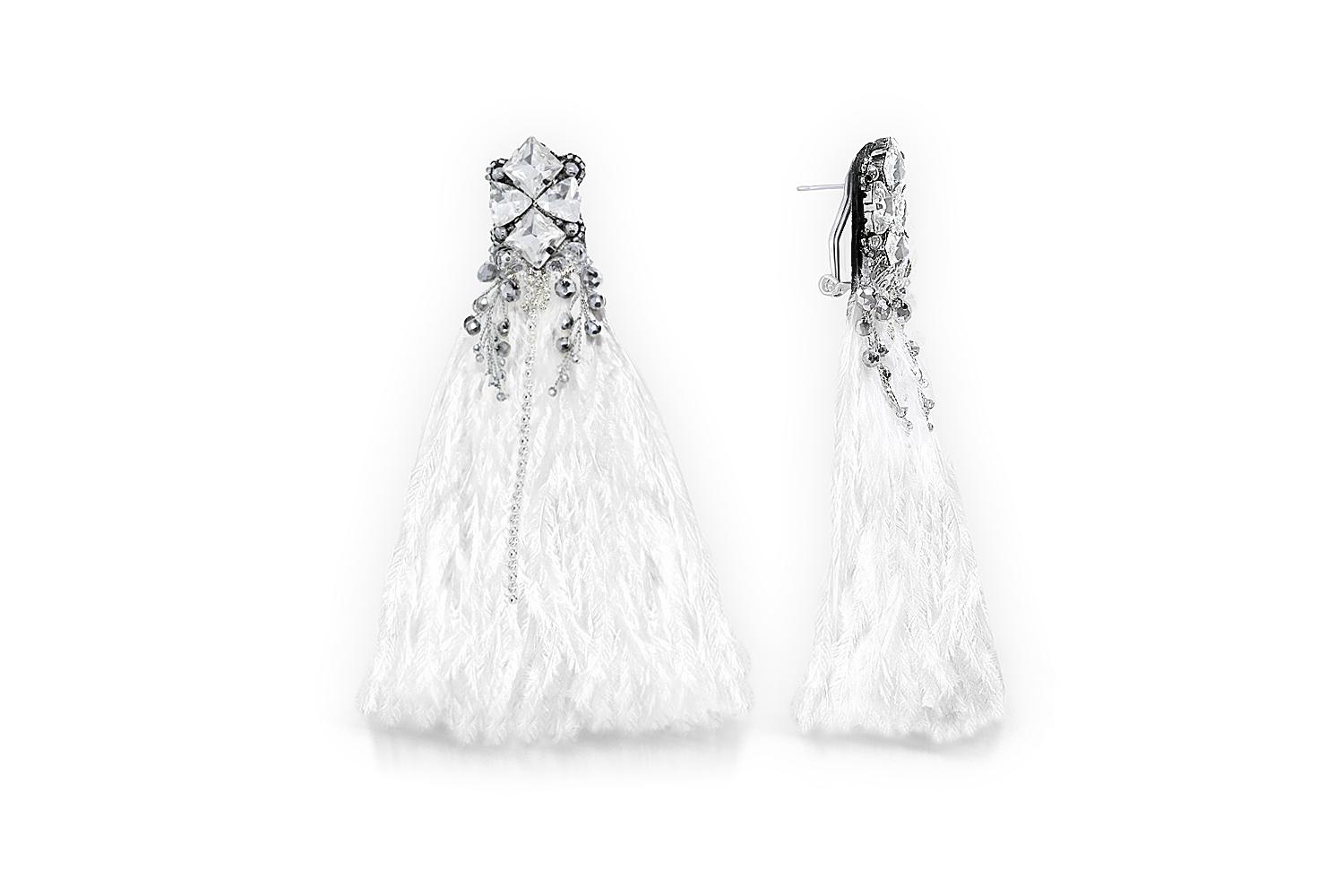 Мастера компании NEWGOLD, приложив всё свое мастерство и искусство, создали для Вас на нашем собственном производстве Бижутерные серьги свадебные Перья белый.