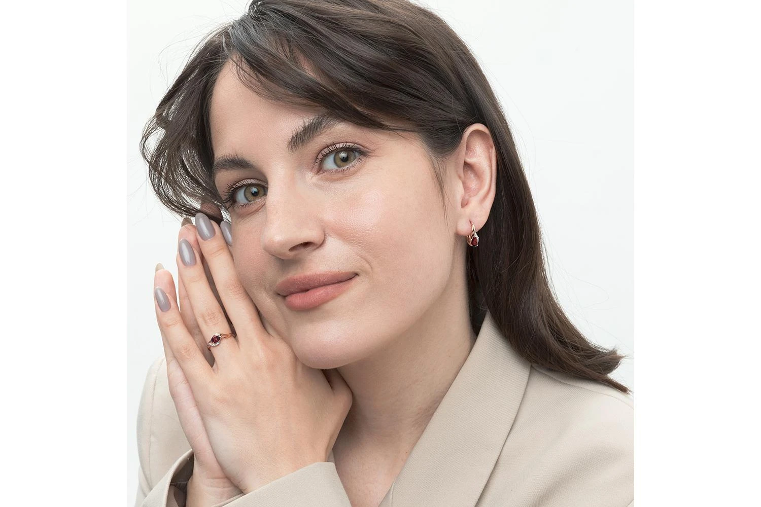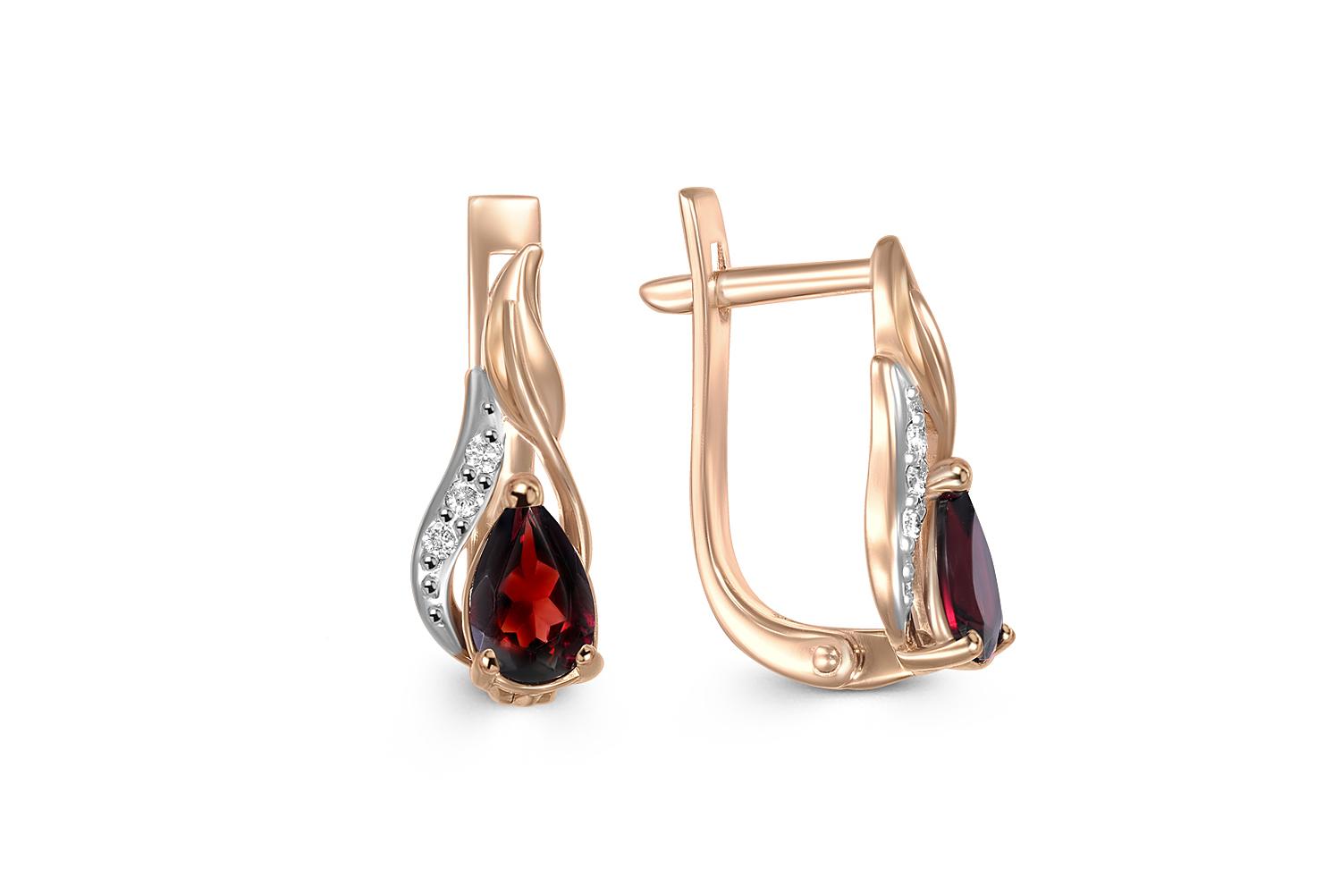 Закажите Серьги из красного золота с 2 гранатами и 6 фианитами с получением в Москве через курьерскую службу доставки напрямую с нашего производственного склада завода NEWGOLD!