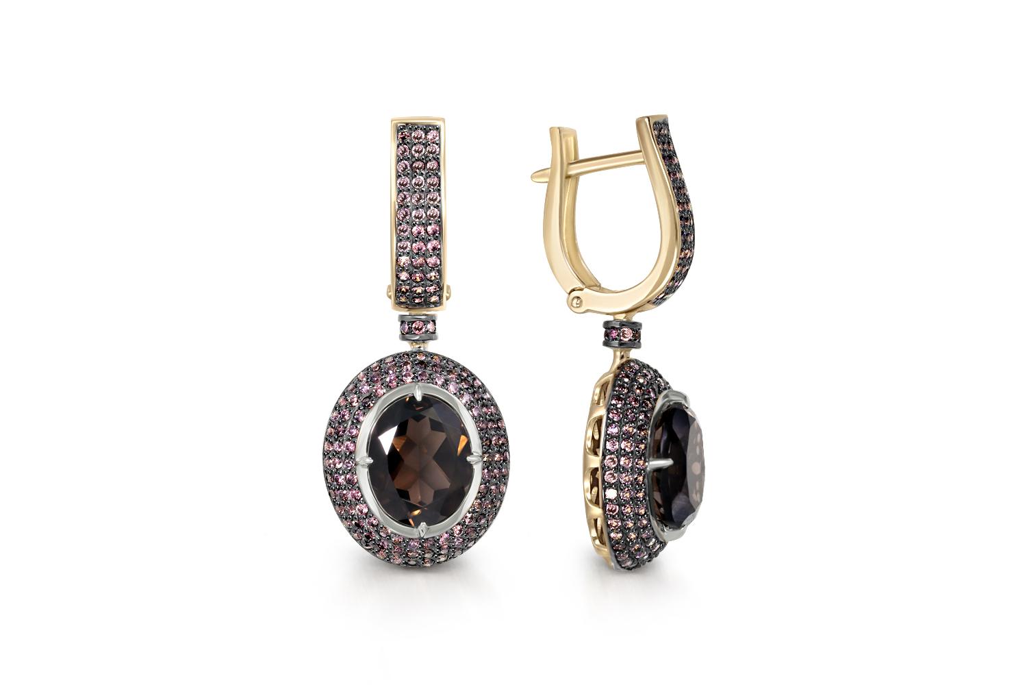 Мастера компании NEWGOLD, приложив всё свое мастерство и искусство, создали для Вас на нашем собственном производстве Серьги из жёлтого золота с 2 раухтопазами и 290 фианитами.