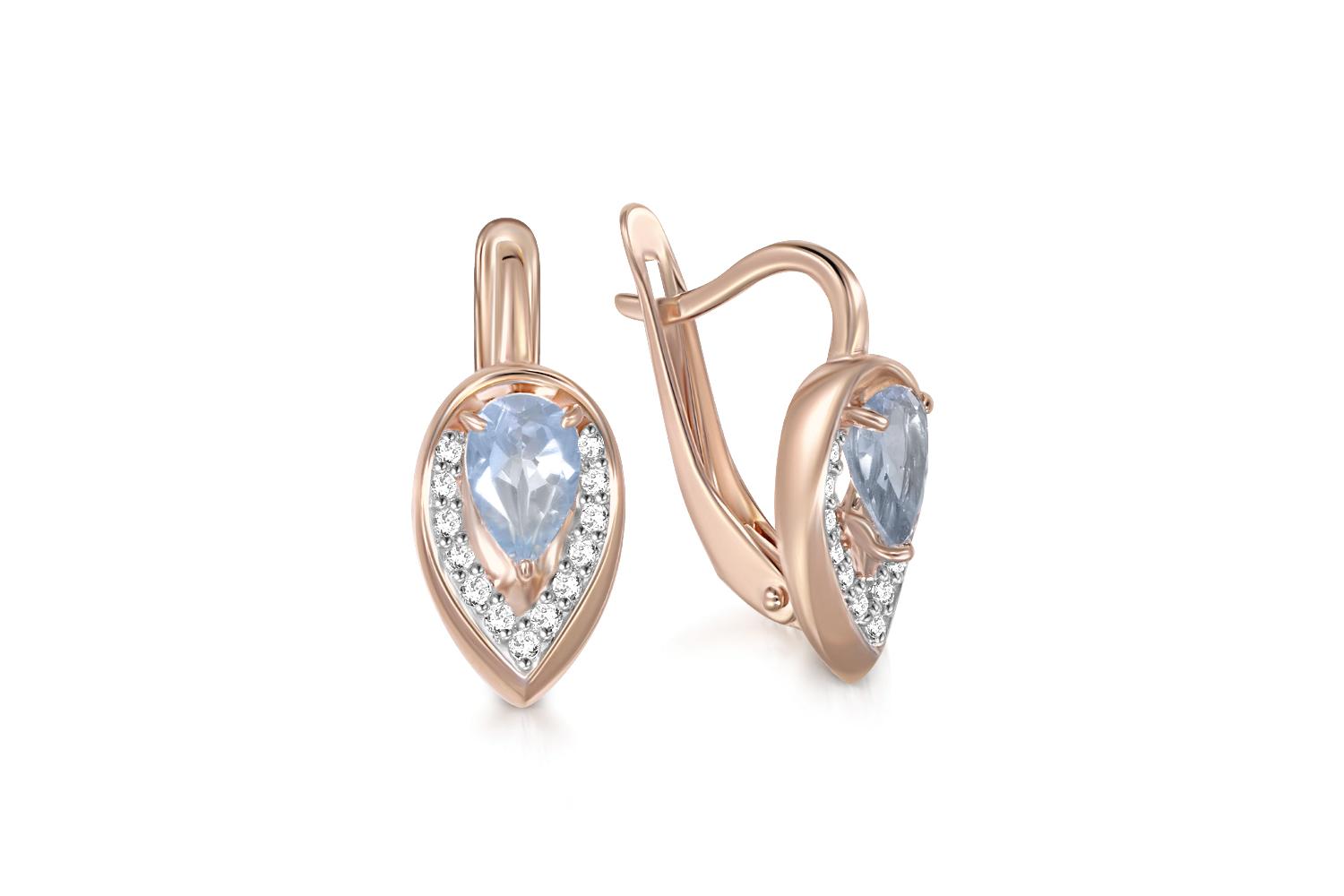 Мастера компании NEWGOLD, приложив всё свое мастерство и искусство, создали для Вас на нашем собственном производстве Серьги из красного золота с 2 топазами sky и 26 фианитами.