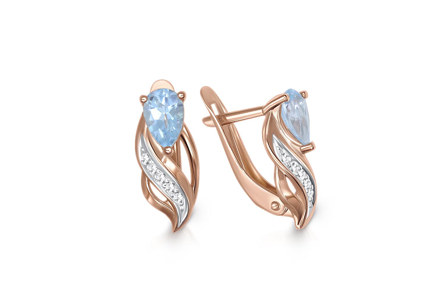 Мастера компании NEWGOLD, приложив всё свое мастерство и искусство, создали для Вас на нашем собственном производстве Серьги из красного золота с 2 топазами sky и 10 фианитами.